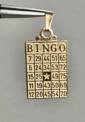 14k Gold Bingo Card Pendant - 5/8” x 1/2” - weighs 1.2 grams - good used condition