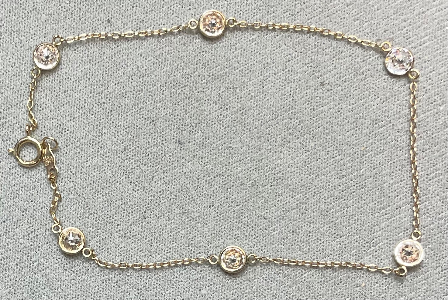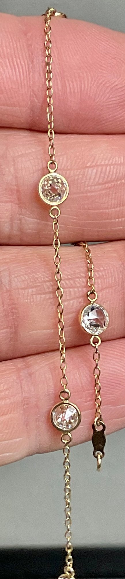 14k Gold Diamonique CZ Bracelet/Anklet- cubic zirconia - 9” long - weighs 2 grams - good used condition
