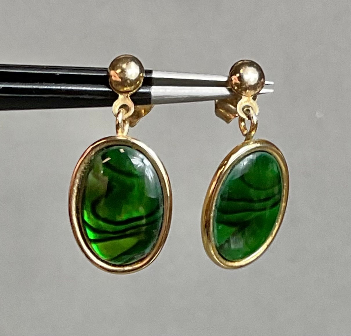 14k Gold Filled Abalone Earrings - 1/20 14k gold filled - 5/8” x 1/2” - good used condition