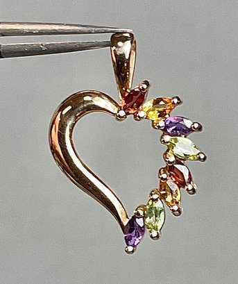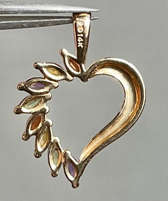 14k Gold Multicolored Gemstone Heart Pendant - 1” x 3/4” - weighs 2 grams - good used condition