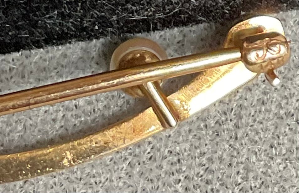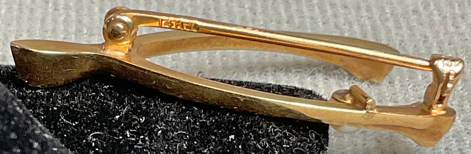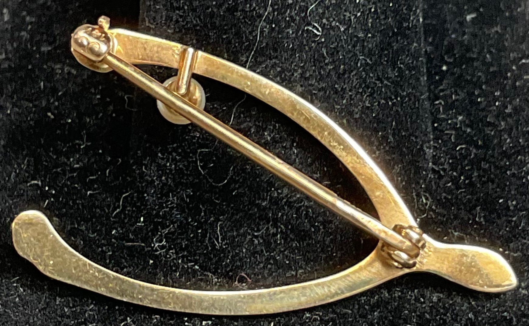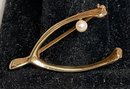 14k Gold & Pearl Wishbone Brooch - 1 3/8” x 3/4” - weighs 2.2 grams - good used condition