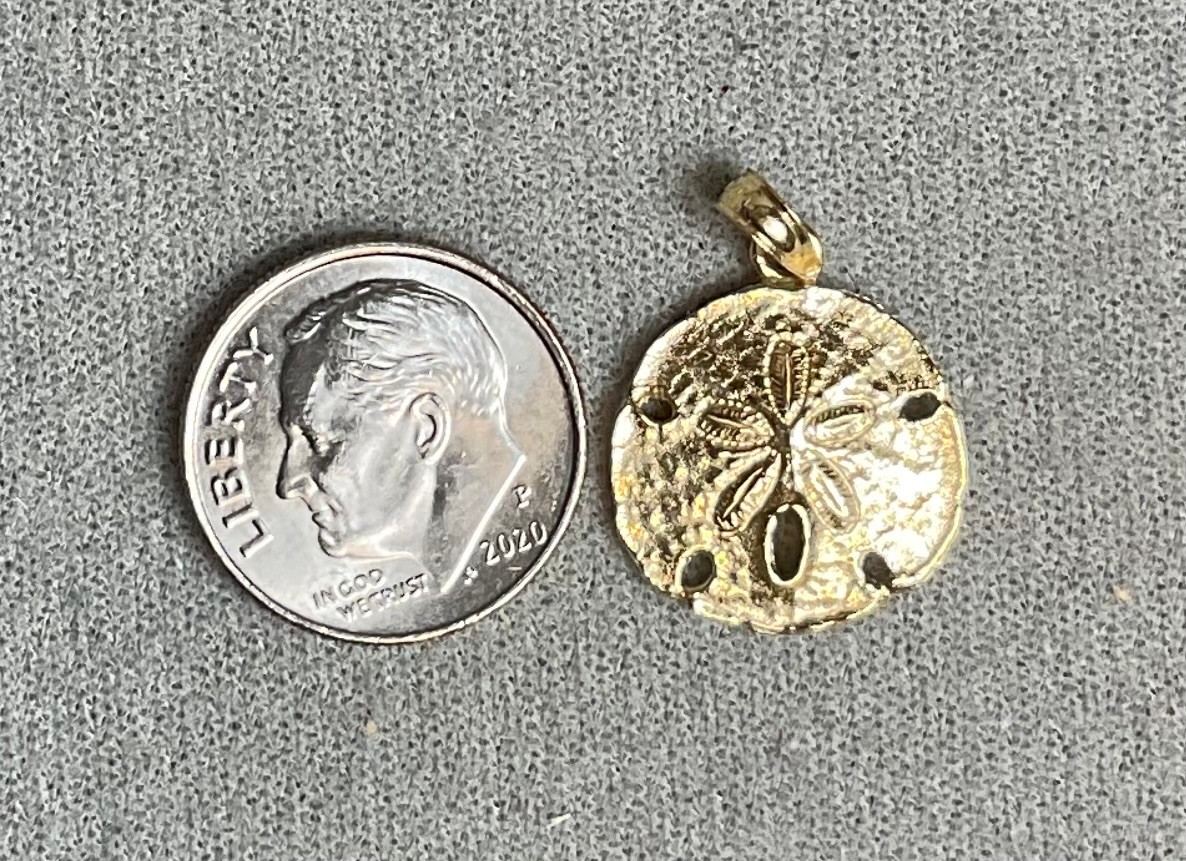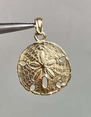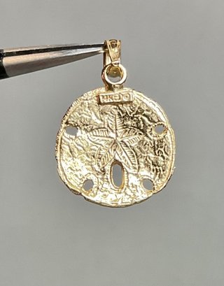 14k Gold Sand Dollar Pendant - 3/4” x 5/8” - weighs 1.76 grams - good used condition