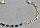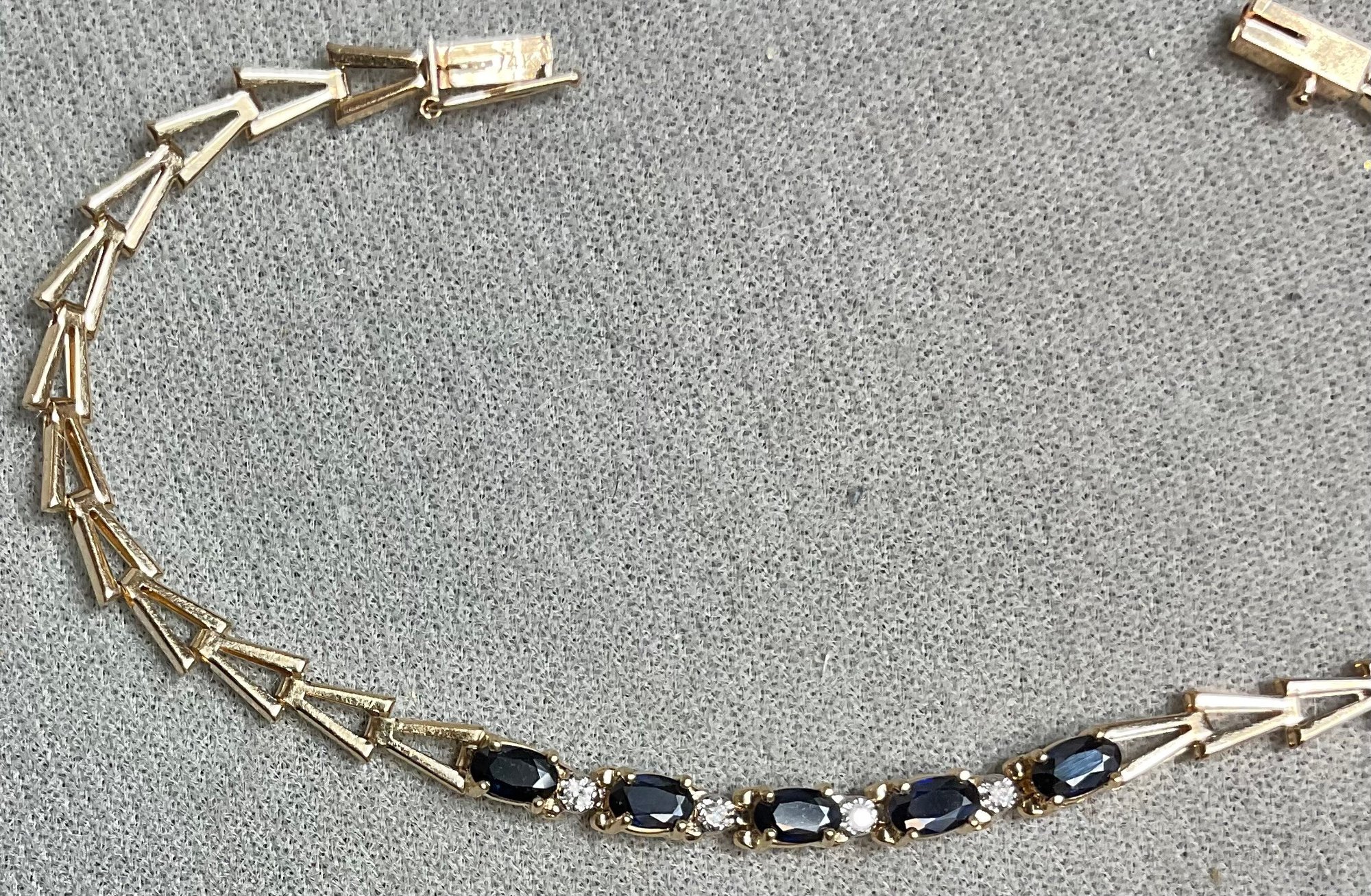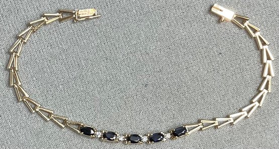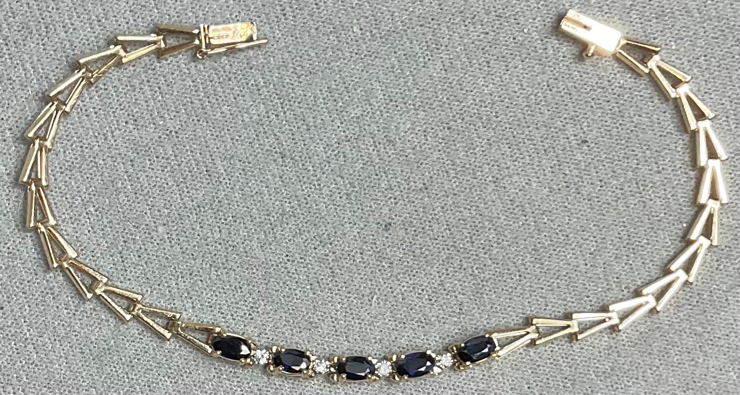 14k Gold Sapphire & Diamond Bracelet - 7” long - 1/8” wide - weighs 4.1 grams - good used condition
