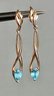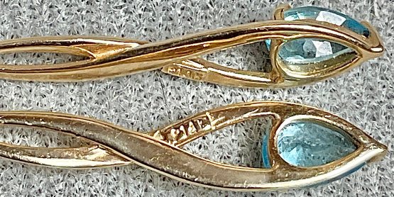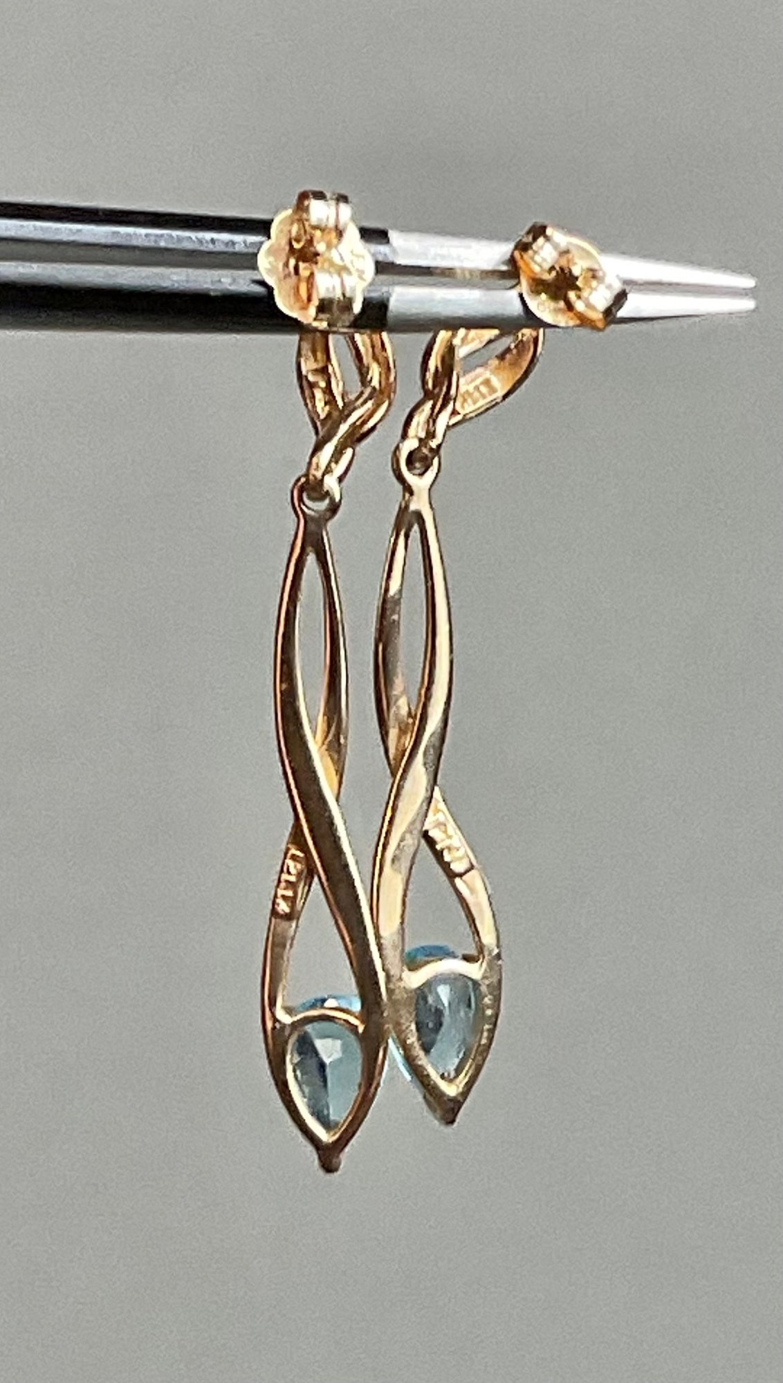 14k Gold Topaz Dangle Earrings - 1 3/8” long - weighs 2 grams - good used condition