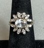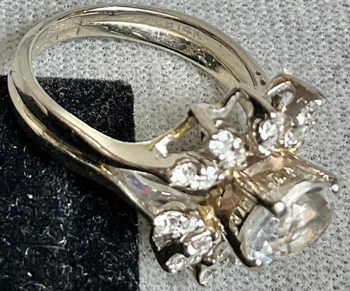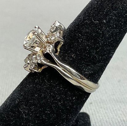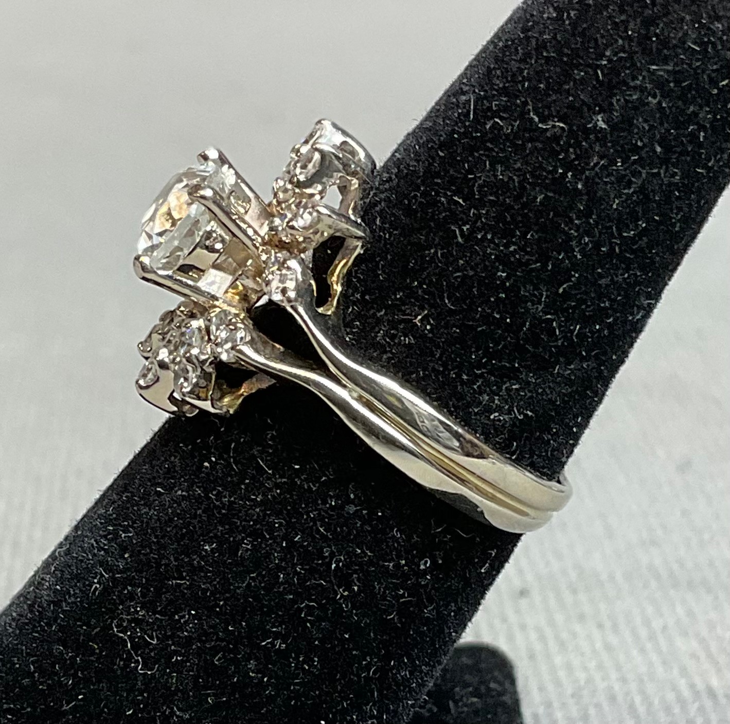 14k White Gold Diamond Halo W/ White Topaz Center Stone Ring - size 6.5 - weighs 5.1 grams - good used condition