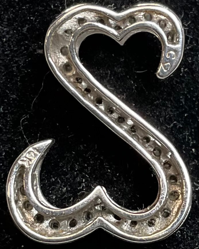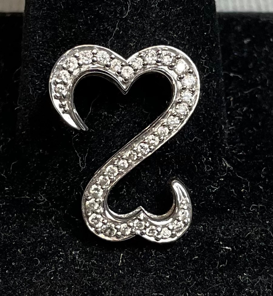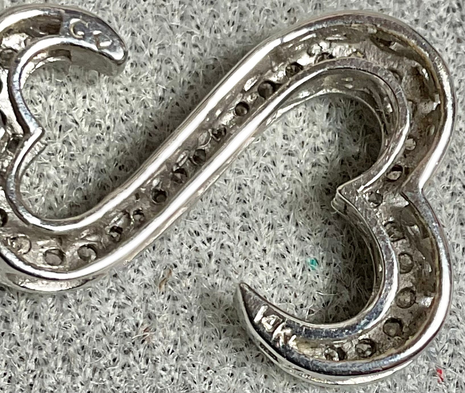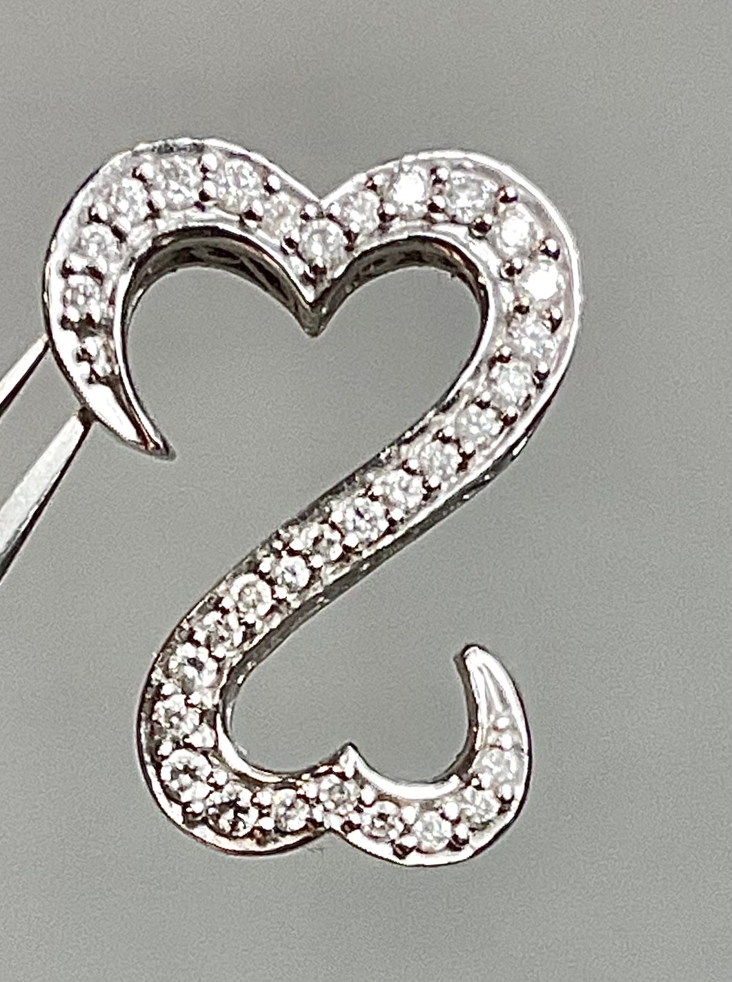 14k White Gold & Diamond Open Hearts Pendant - Jane Seymour - 3/4” x 9/16” - weighs 2.5 grams - good used condition
