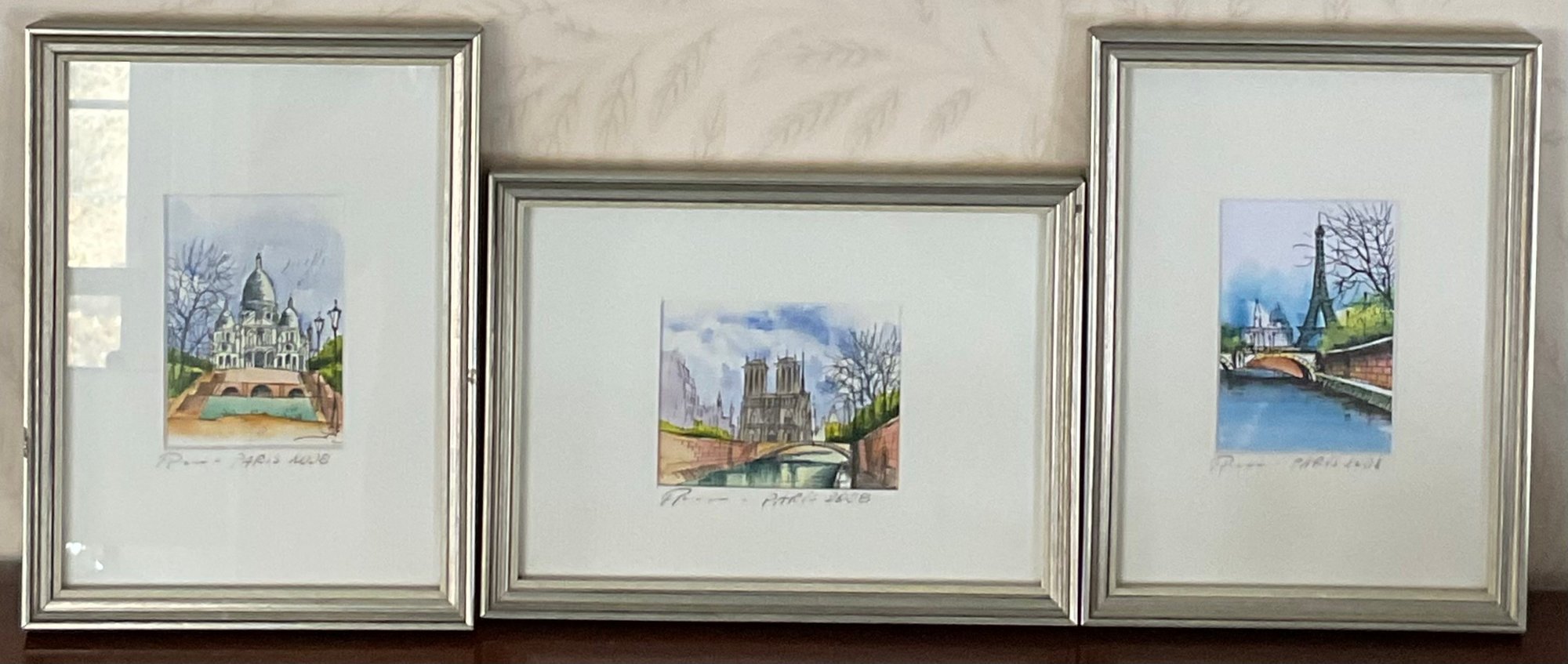 #19 - 3 Small Signed Paris Art Prints - 7.75” x 5.75” - good used condition