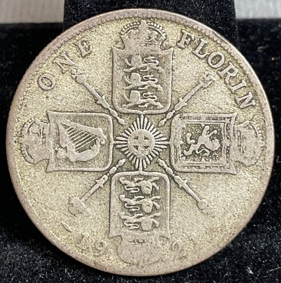 1921 United Kingdom One Florin Silver Coin - 50% silver - good used condition