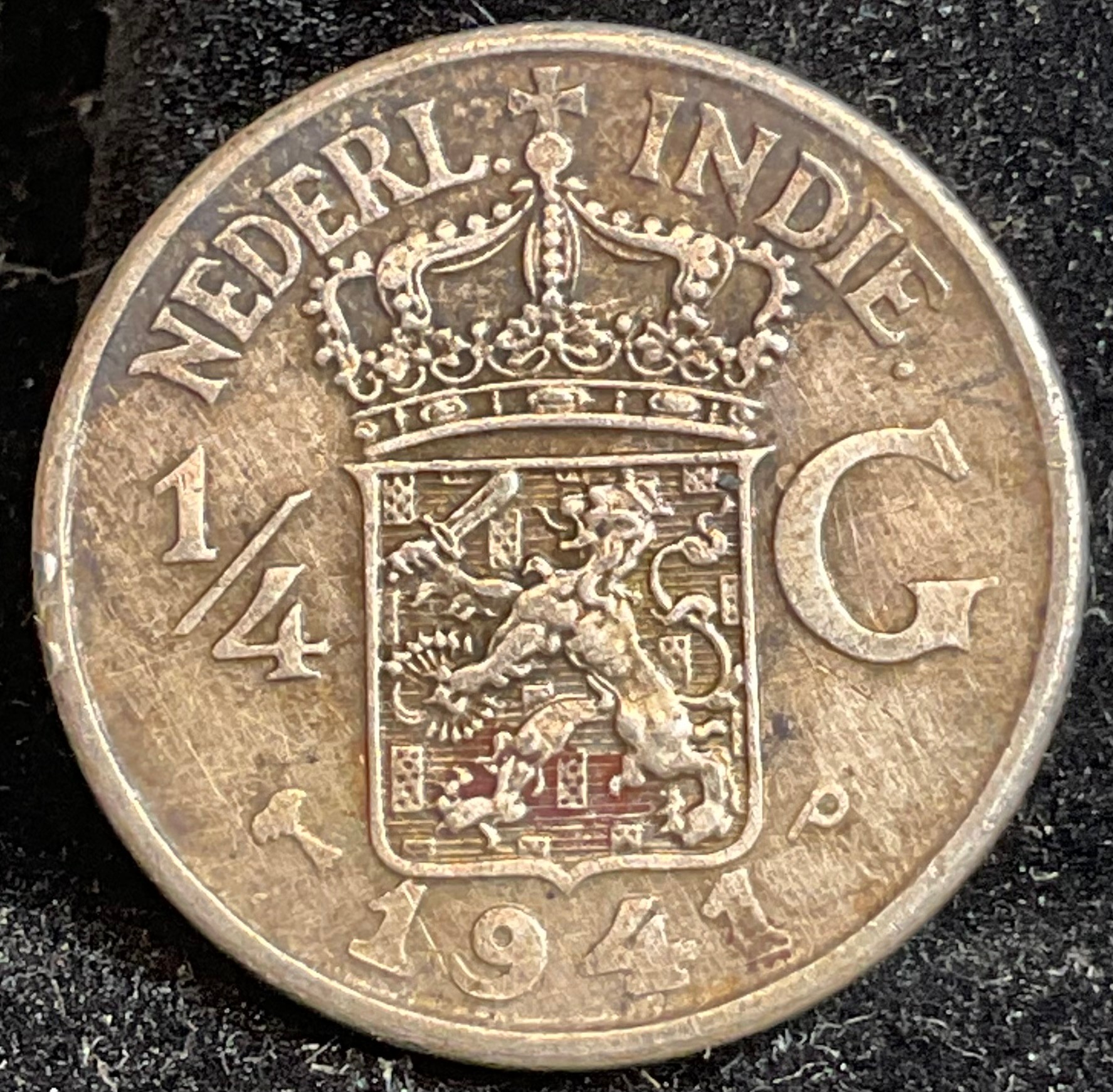 1941 Netherlands East Indies 1/4 Gulden Silver Coin - 72% silver - good used condition