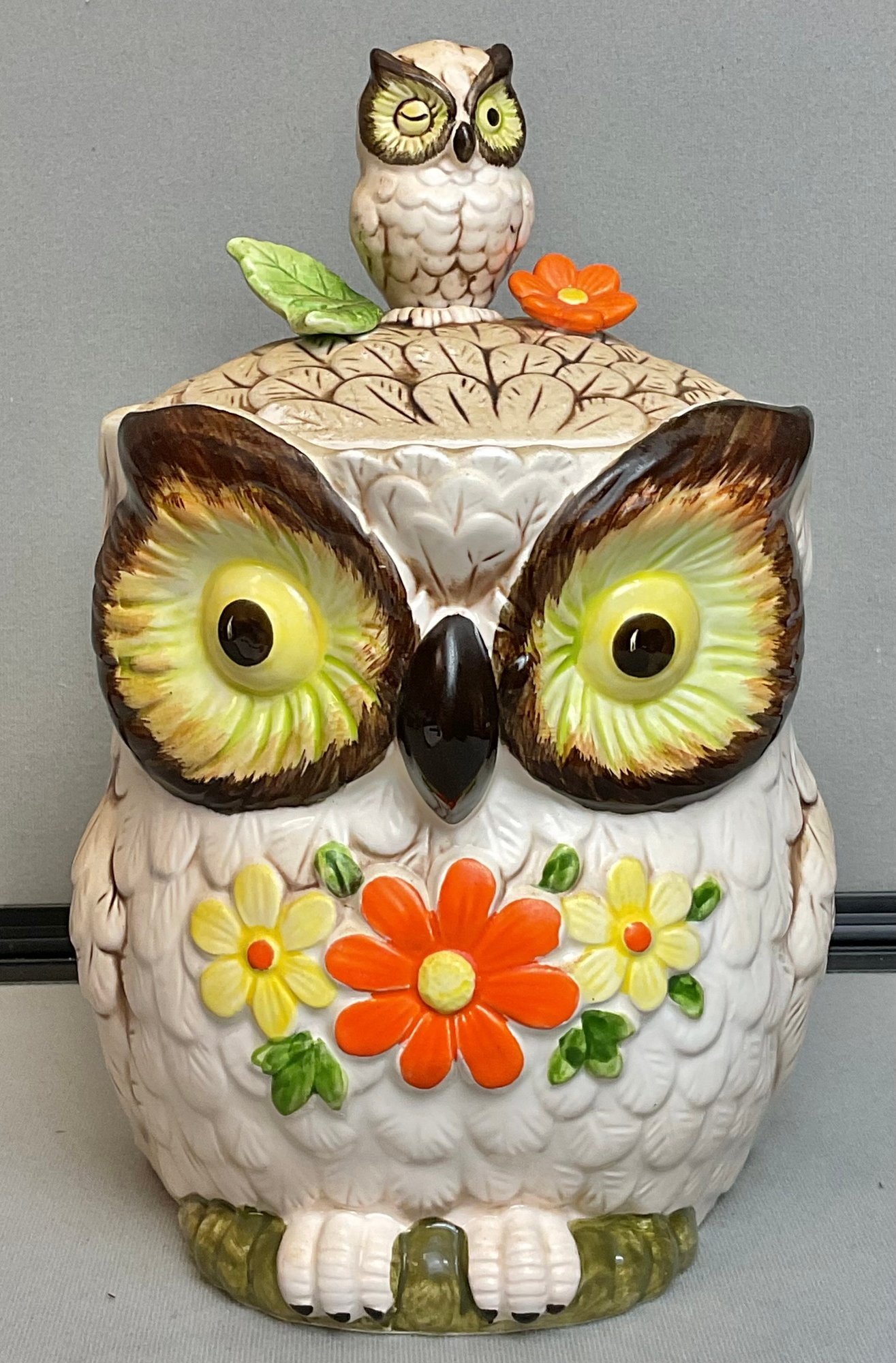 1970s Ceramic Owl Cookie Jar - no chips - 11.5” tall x 7” round - good used condition