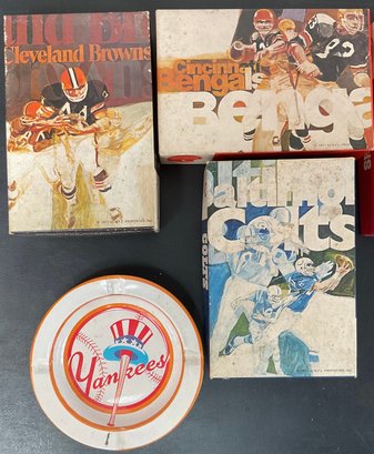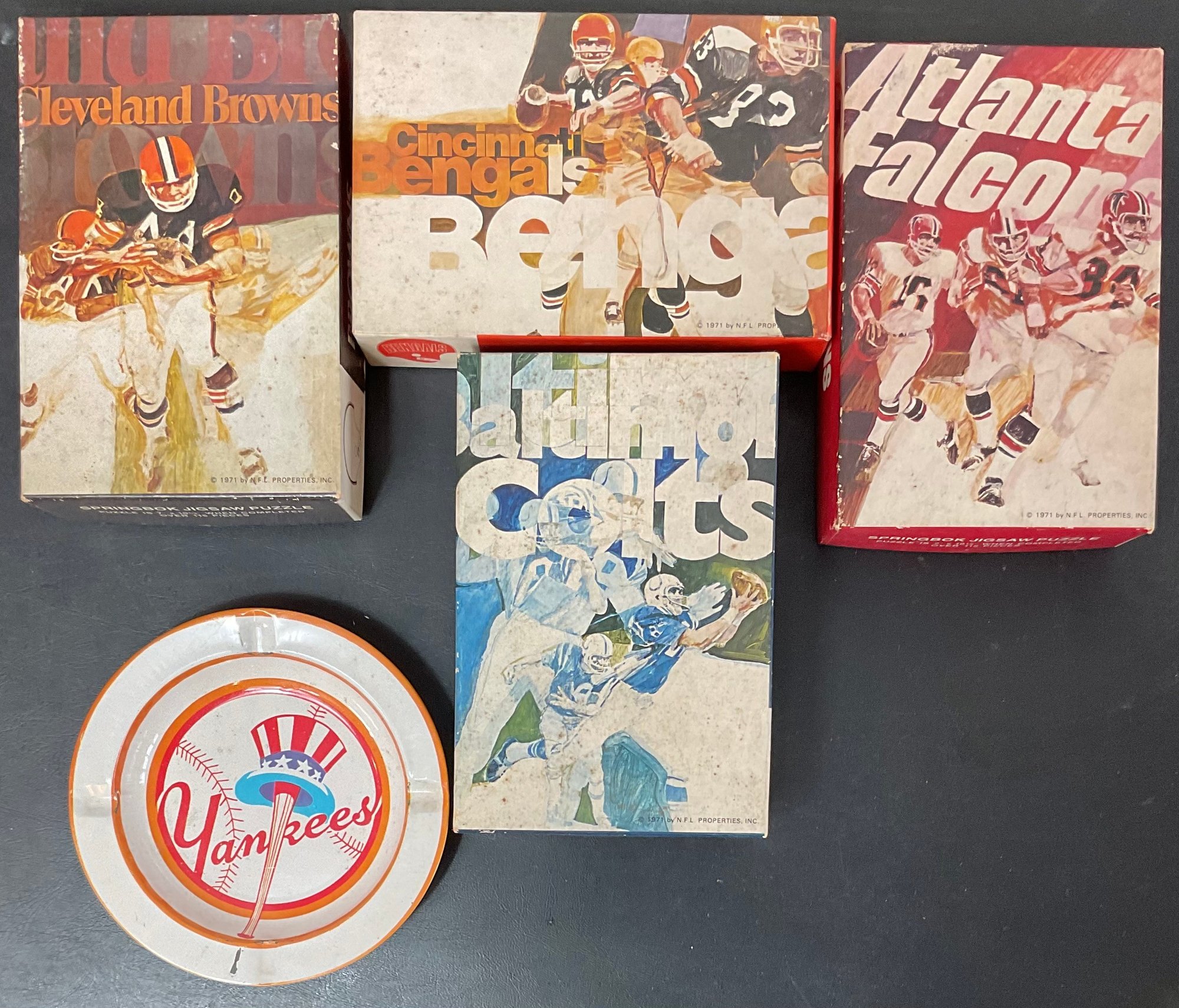 1971 Football Puzzles & Vintage Yankees Ashtray -not sure if all pieces are there (didn’t count them) - good used condition