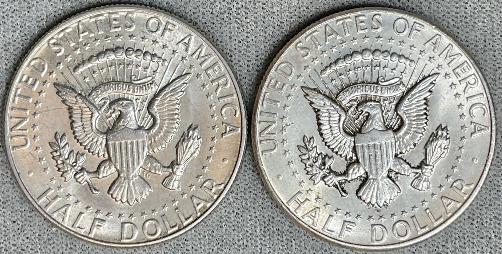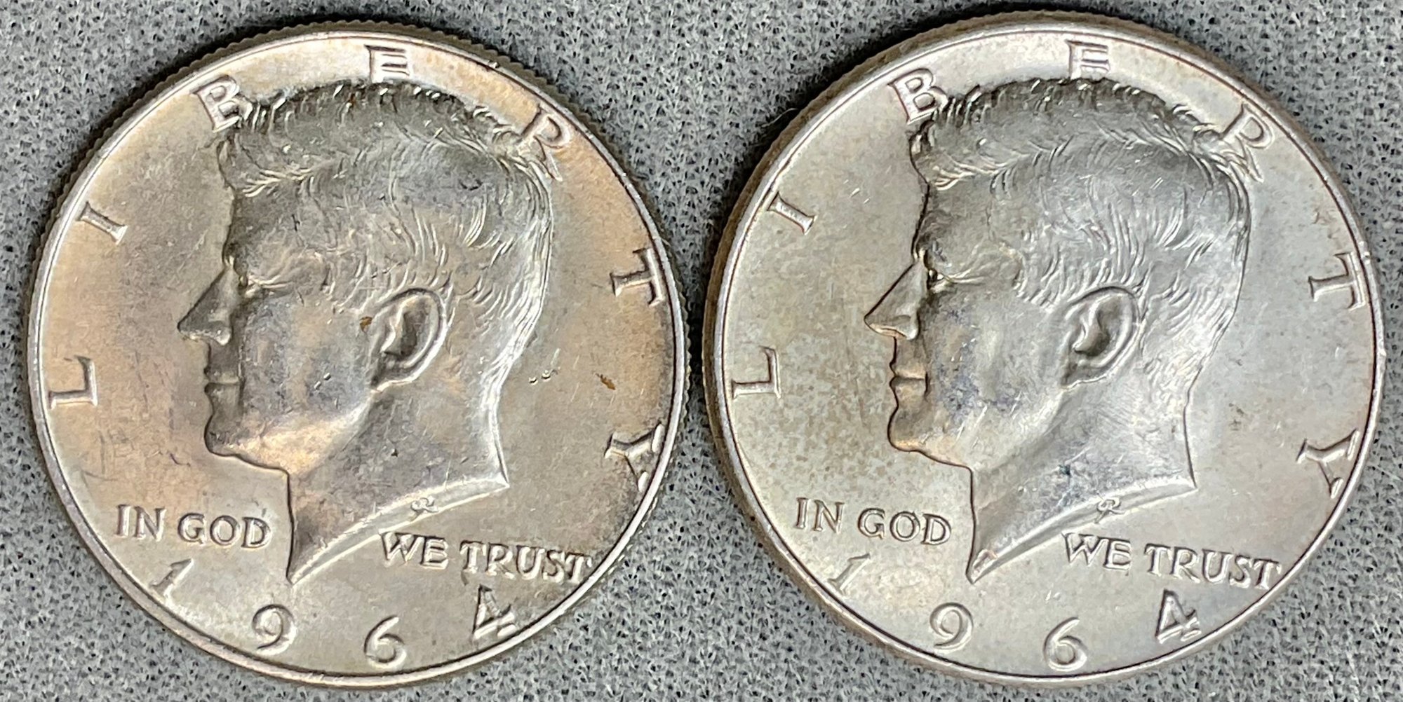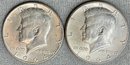 2 - 1964 Kennedy Half Dollars - 90% silver - good used condition