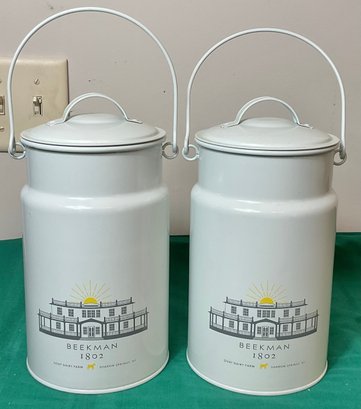 2 Beekman Milk Can Shaped Containers - tin - 9.5” tall x 5.25” wide - good used condition