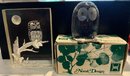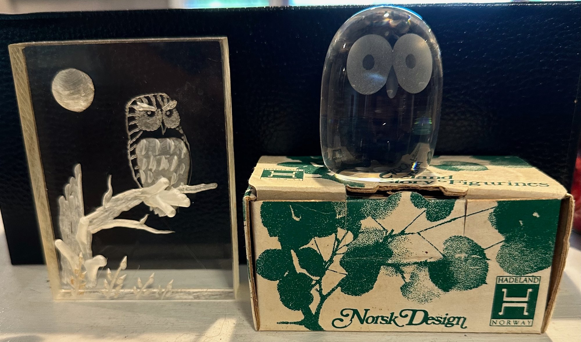 2 Clear Owl Figurines - 1 etched acrylic figurine 3'' & 1 crystal owl figurine 1 1/2'' - good used condition