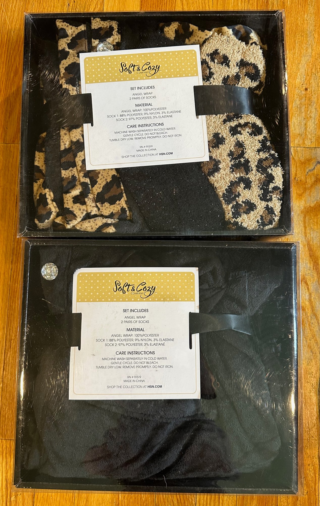 2 New Soft & Cozy Company Socks And Angel Wrap - black & cheetah print - new in box
