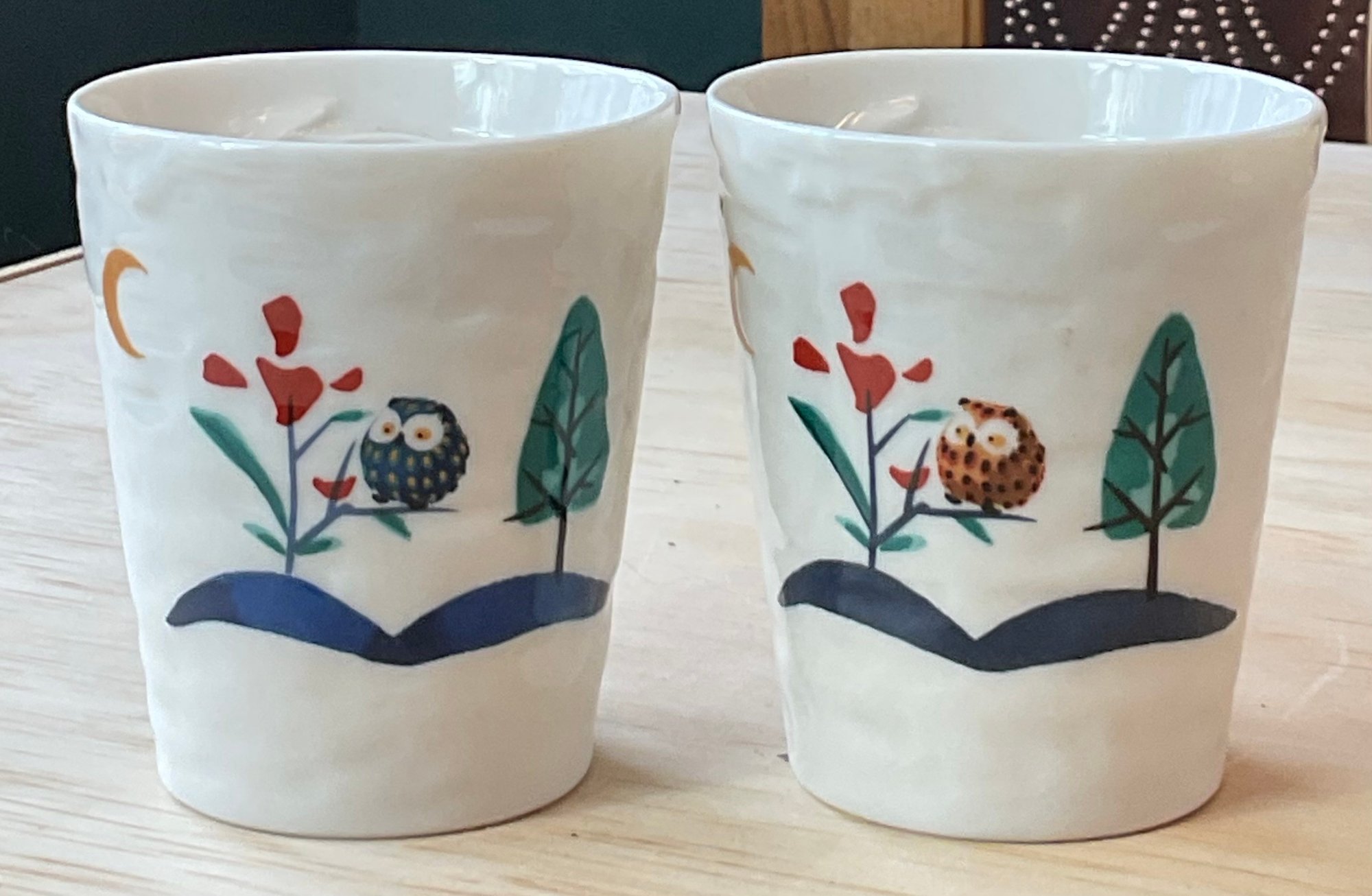 2 Owl Mugs/Cups - no chips - 3 3/8” tall - good used condition