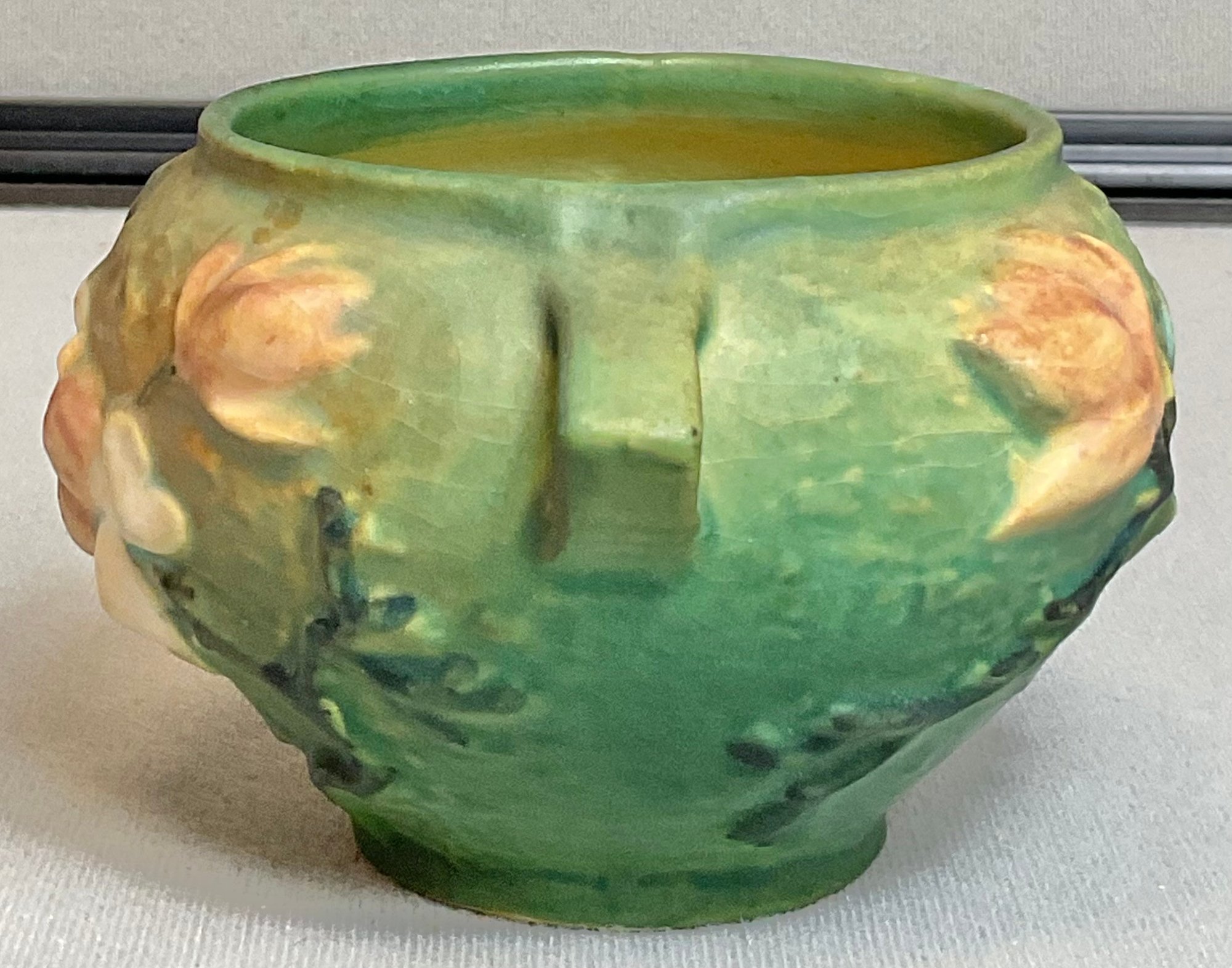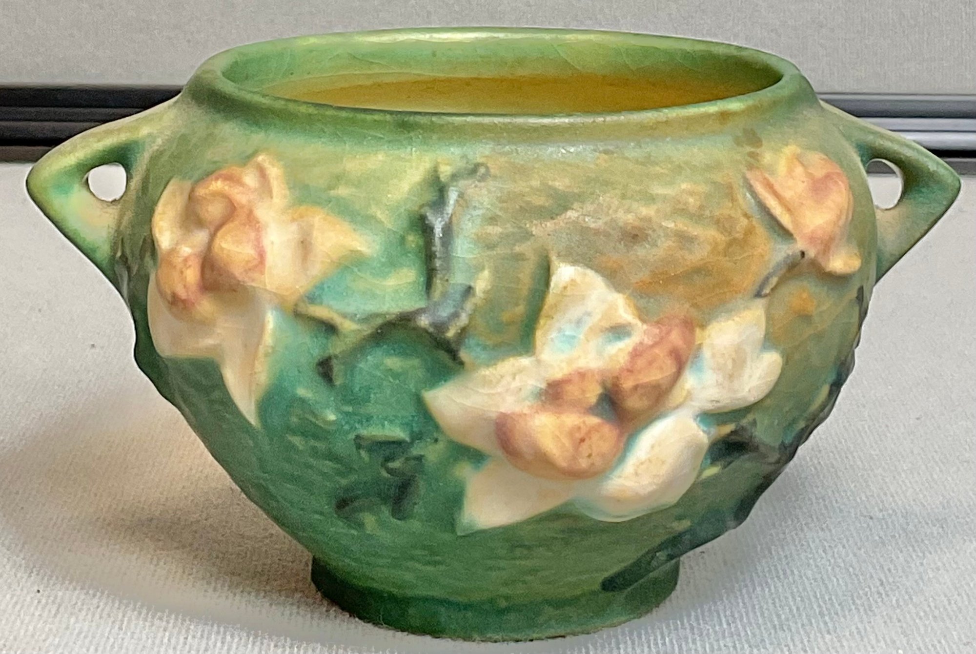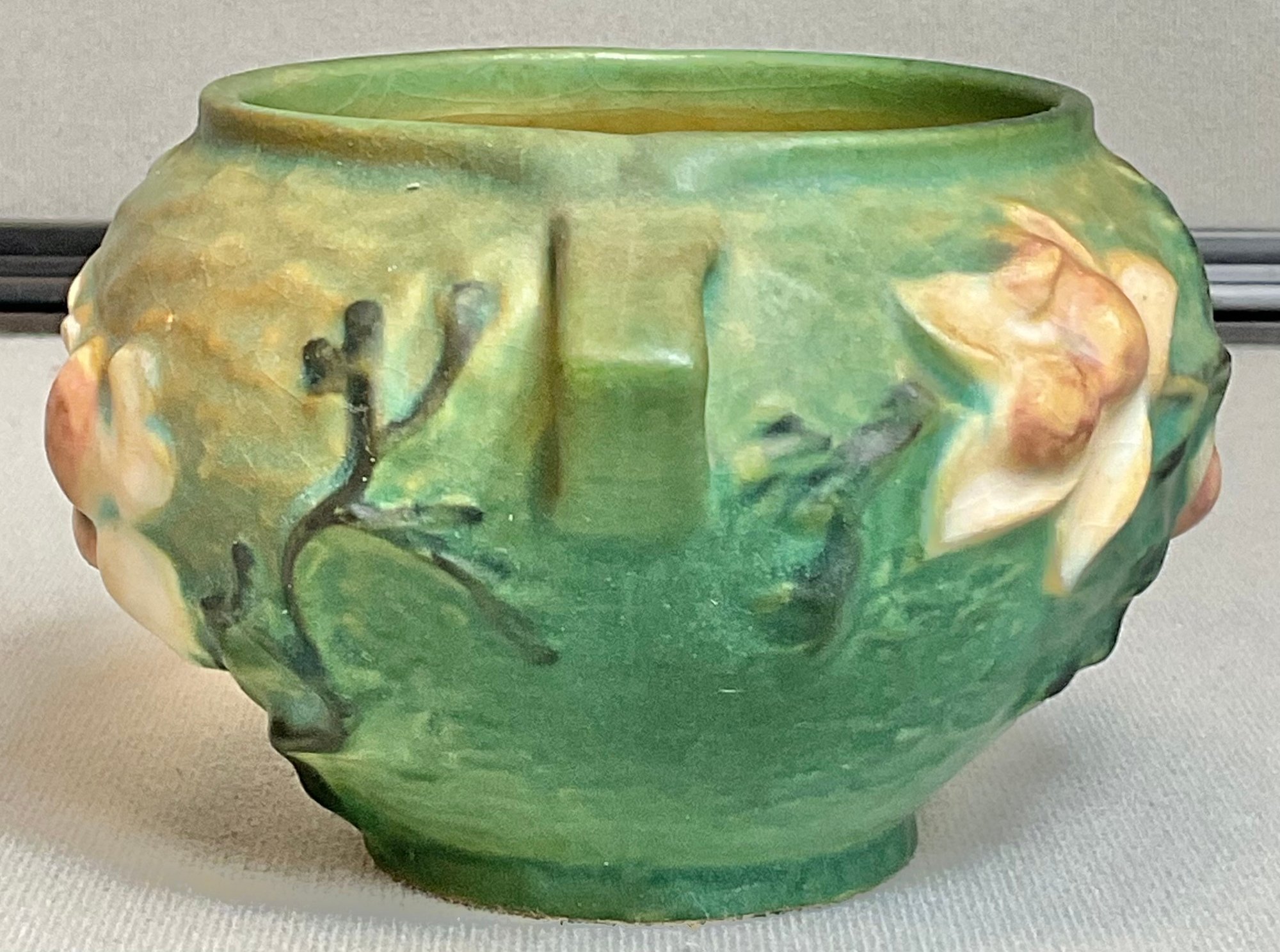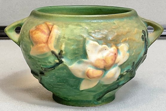 #2 - Roseville Pottery Green Magnolia Vase - 665-3 - no chips - 3 1/8” tall x 5.75” long x 4.75” wide - good used condition