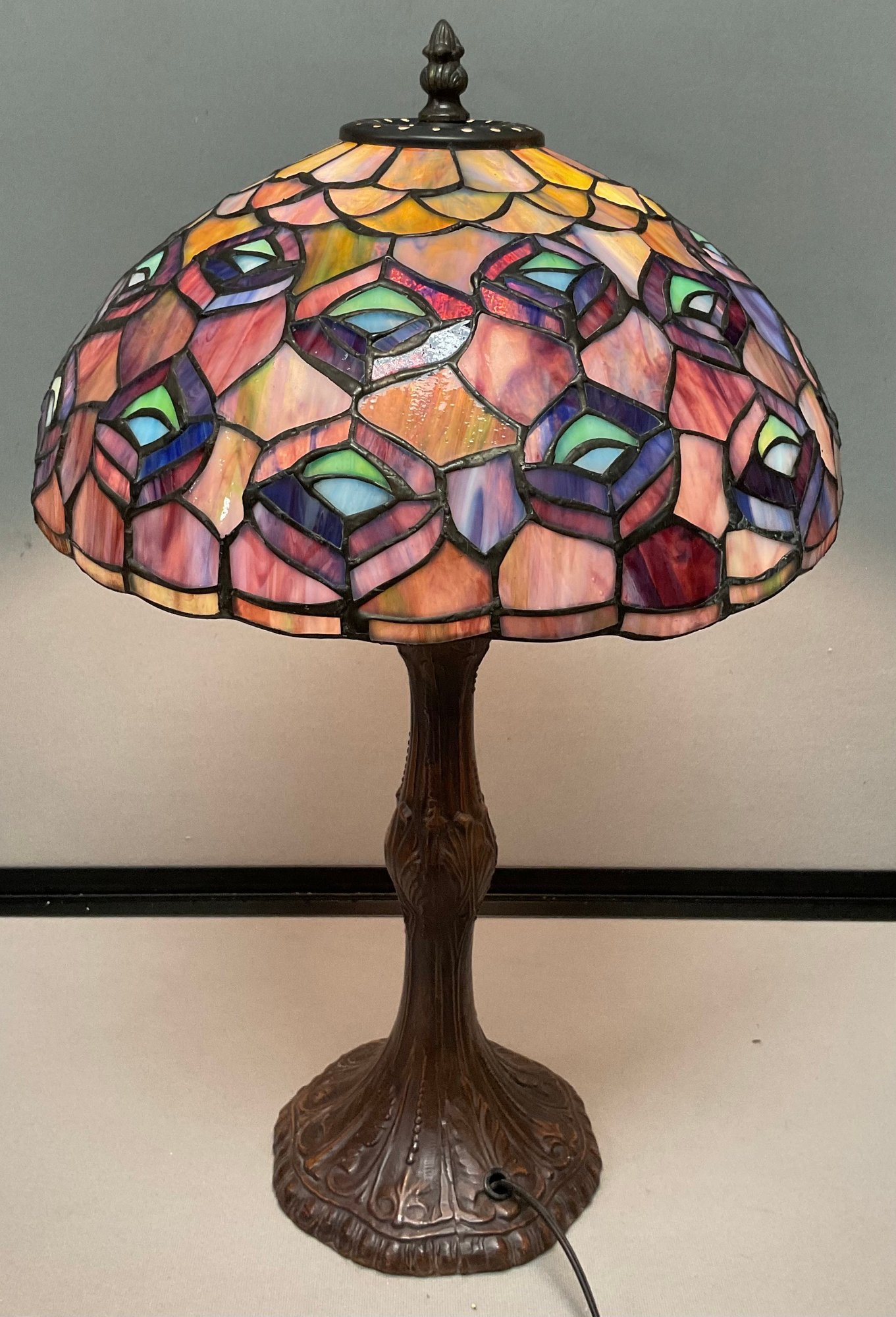 #2 - Tiffany Style Stained Glass Lamp - 20” tall - shade 12” - good used condition