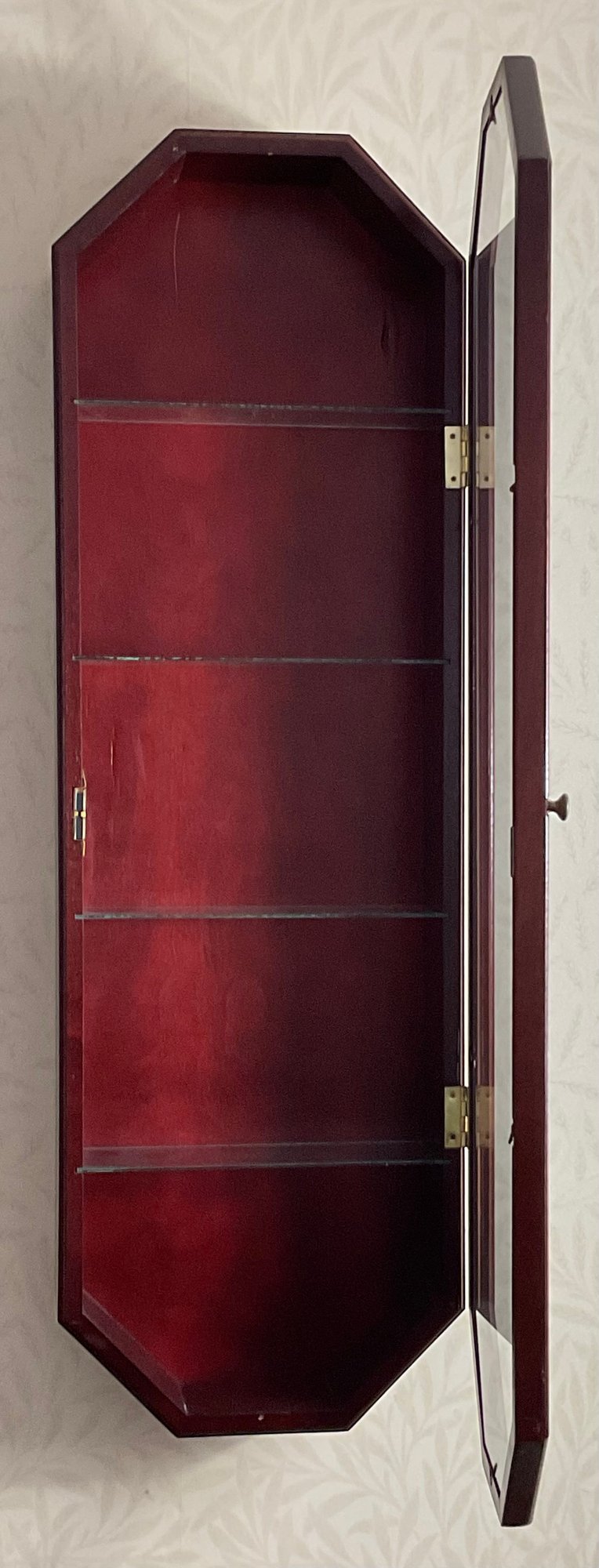 #2 - Wall Mounted Curio Cabinet - 38.5” long x 12” wide x 4.5” deep - good used condition