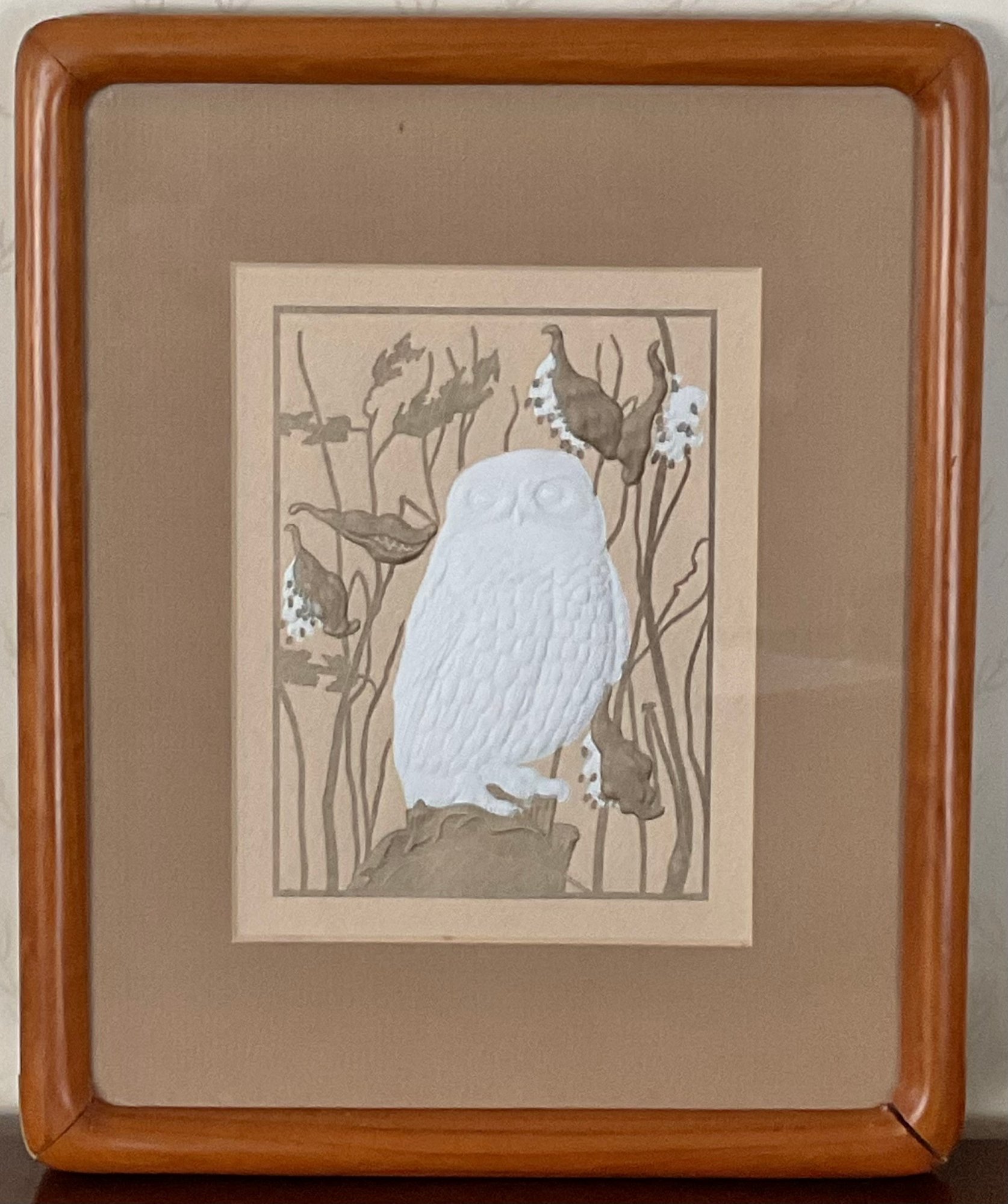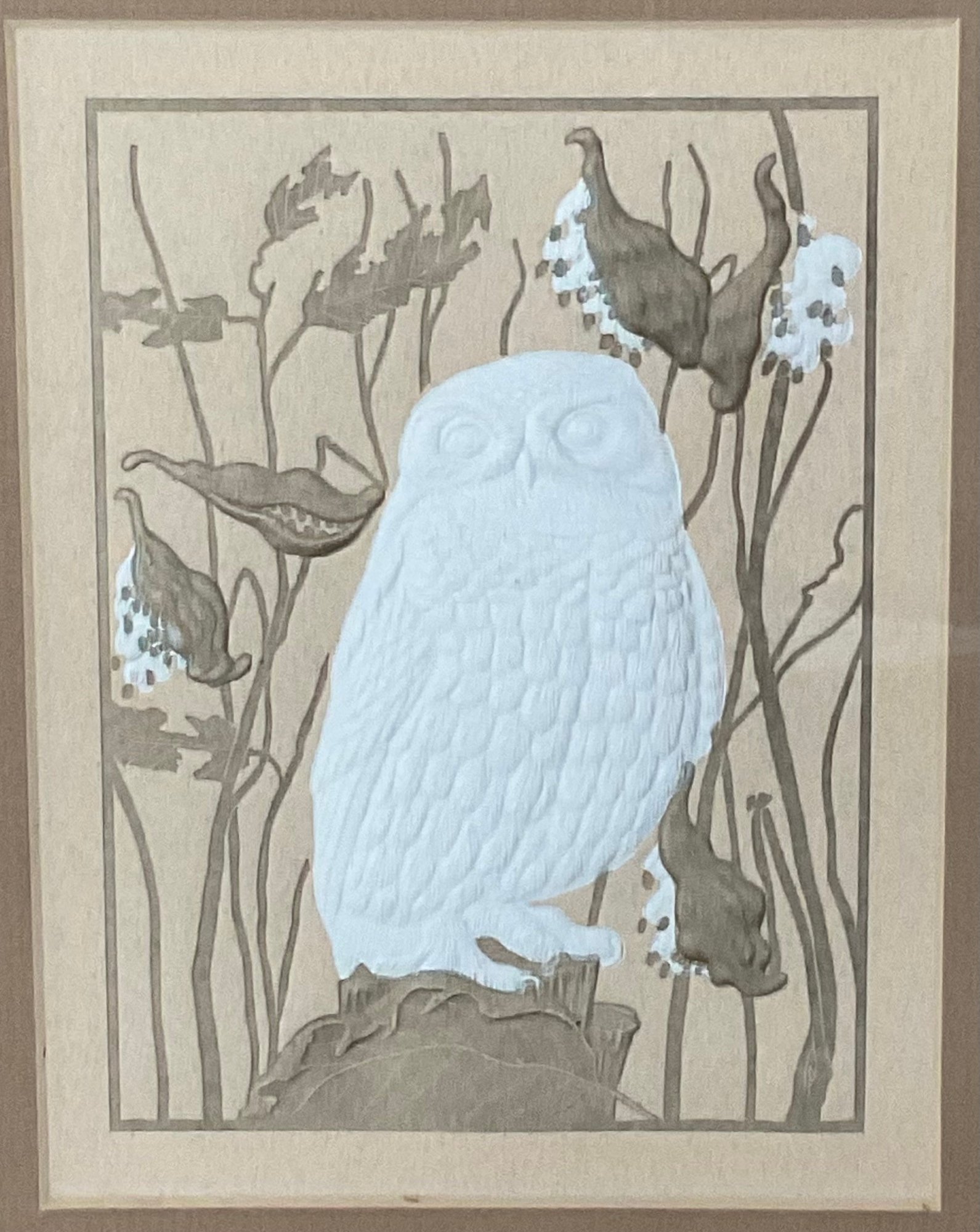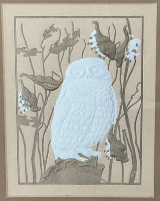 #20 - Hand Made Embossed Lithograph Snow Owl - 9” x 11” - good used condition