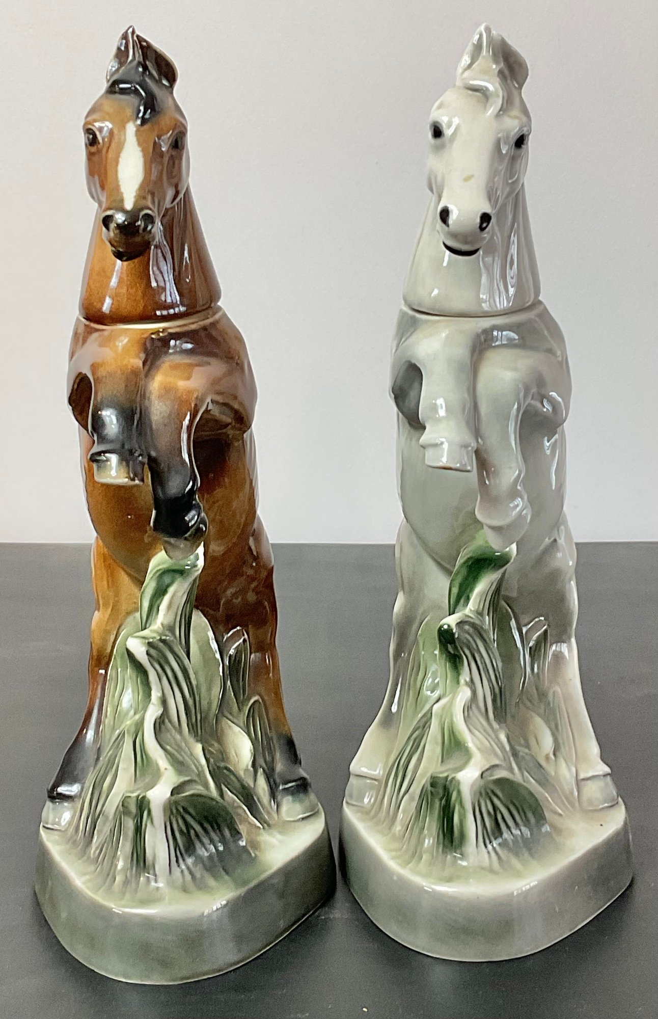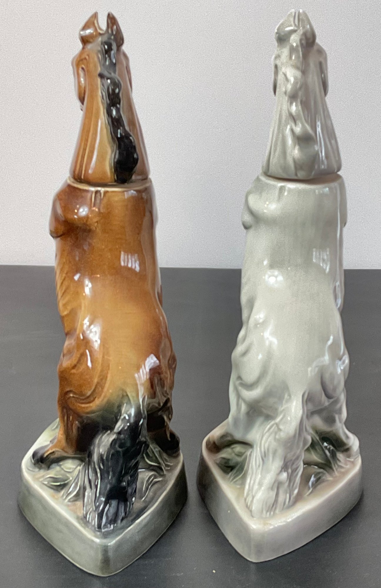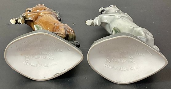 2pc Jim Beam 1962 Horse Decanters Regal China - no chips - 13.5” tall - good used condition