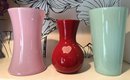 3 Colorful Vases - 6.75" to 8" tall - good used condition -