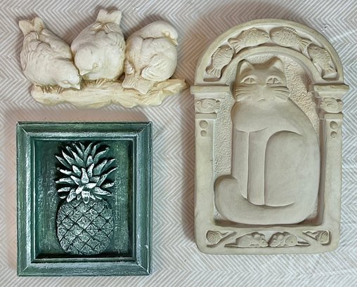 3 Plaster Wall Plaques - 3.5” x 6” to 8.25” x 5.25” - good used condition
