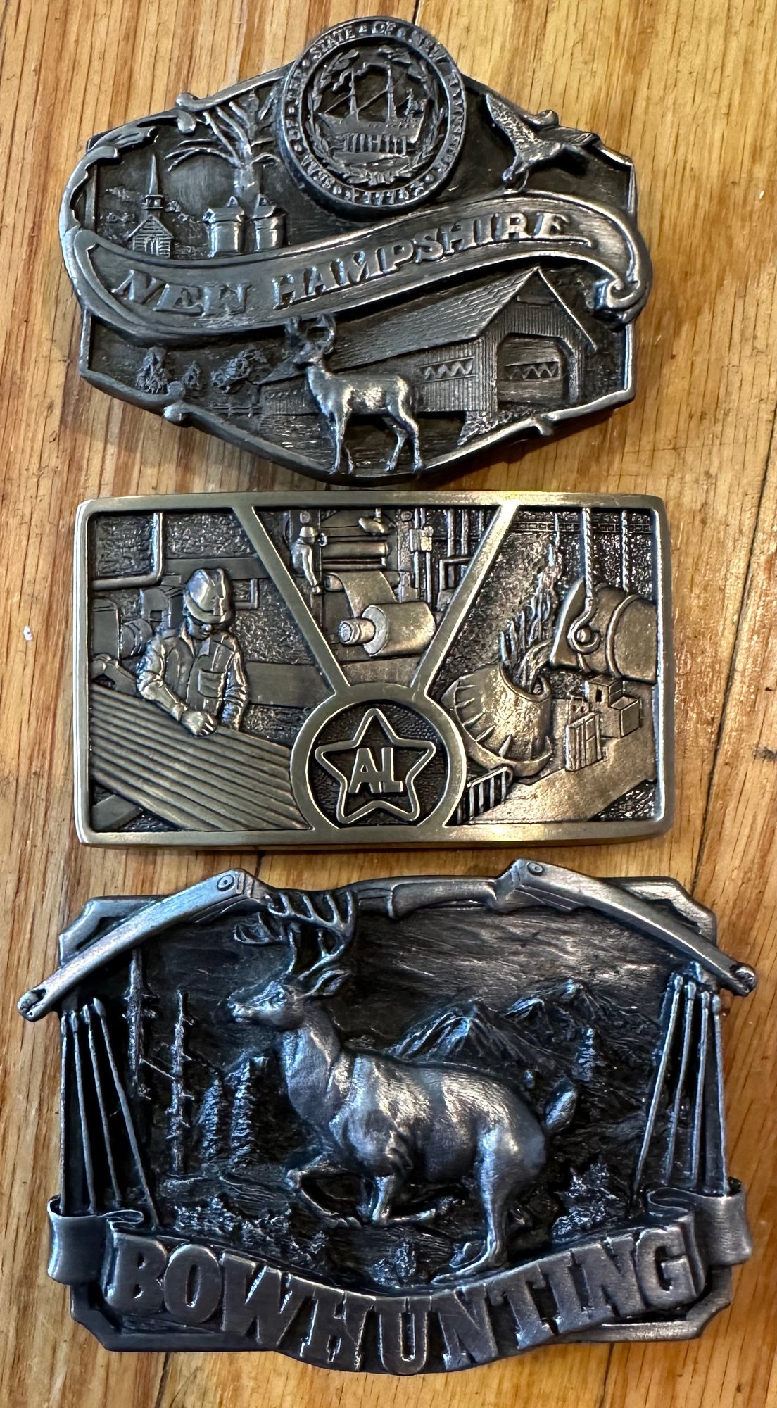 3 State Belt Buckles - 2 New Hampshire & 1 Utah - 3'' - 3 1/2'' long - good used condition