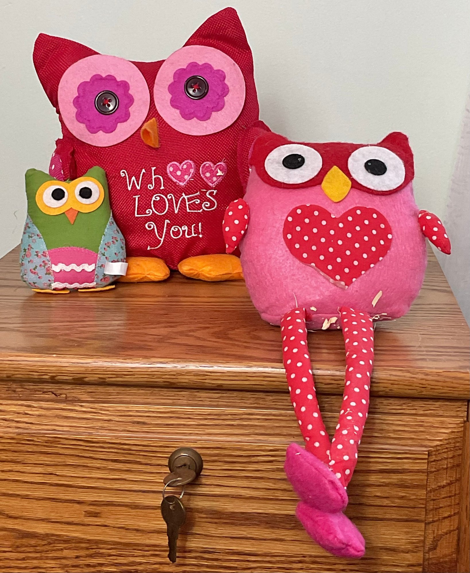 3 Stuffed Felt Owls - 3” to 12” - good used condition