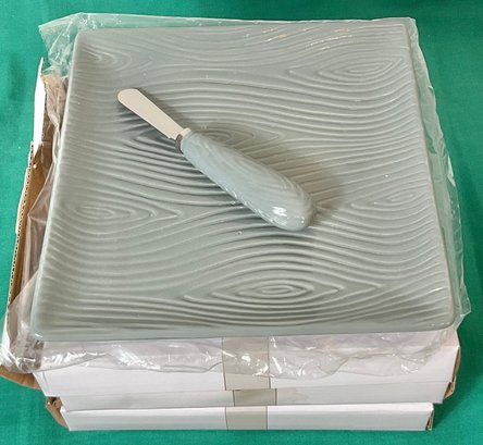 3 Temptations Cheese Plate & Knife - New - plates 8 1/8” x 8.25” - all the same