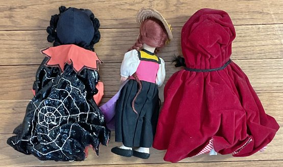 3 Vintage Dolls - 2 are Effanbee - 9” - witches hat not pictured - good used condition