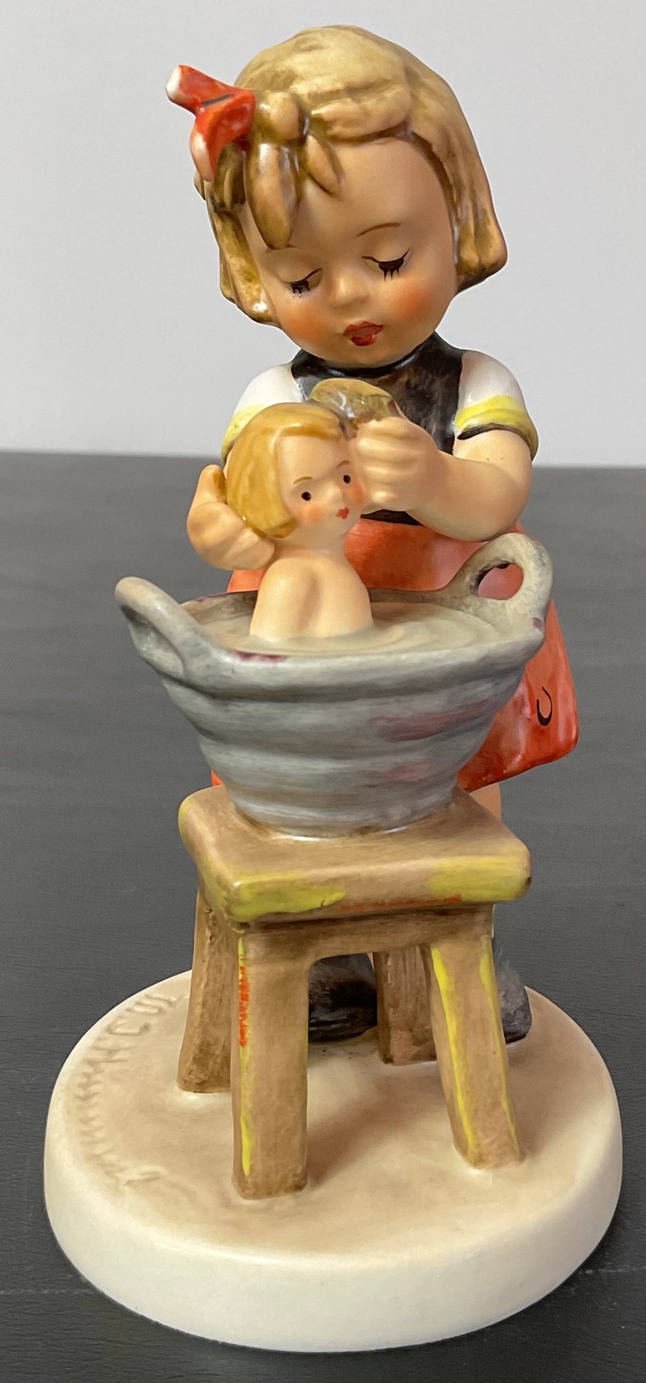 #33 - Goebel MJ Hummel - Doll Bath - no chips (paint loss on bow) - 5” tall - good used condition