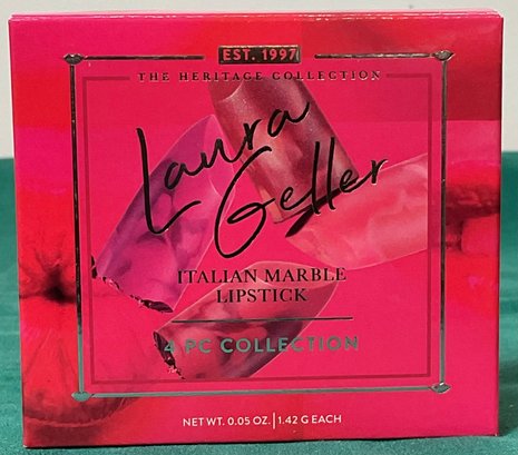 4 - Laura Geller Italian Marble Lipsticks - New - .05 oz each - shades Alfresco, Naples, Honey Bun, Mamma Mia