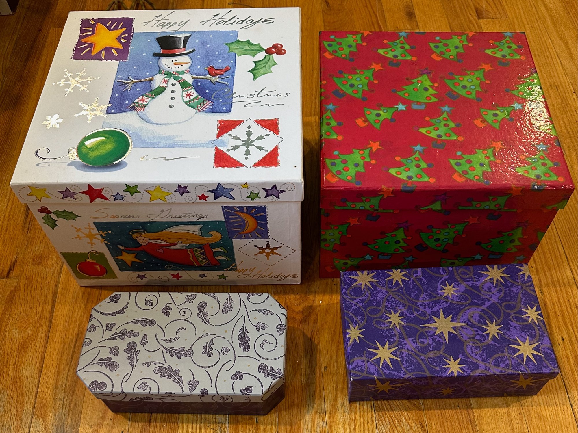 4 Sets Of Stacking Gift Boxes - 8 3/4 - 12'' long 2 3/4 - 8'' tall - good used condition