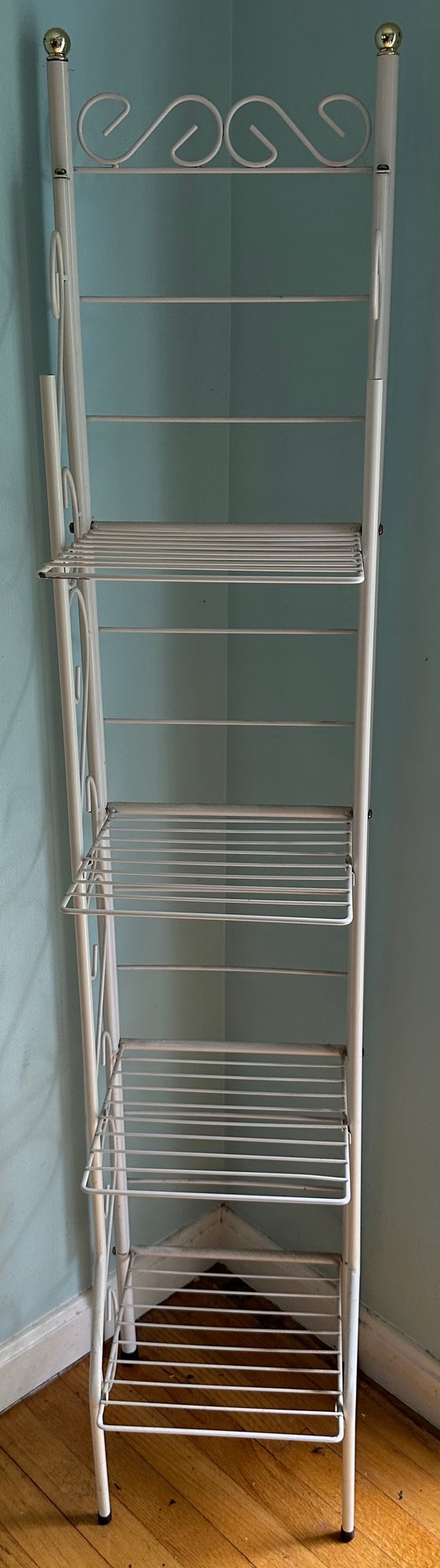4 Shelf White Metal Display Rack - 11.25'' x 11'' x 59'' - as found - good used condition