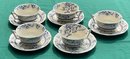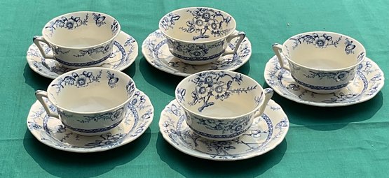4 Vintage Alfred Meakin Medway Flow Blue Floral Teacup & Saucers - no chips or cracks - good used condition