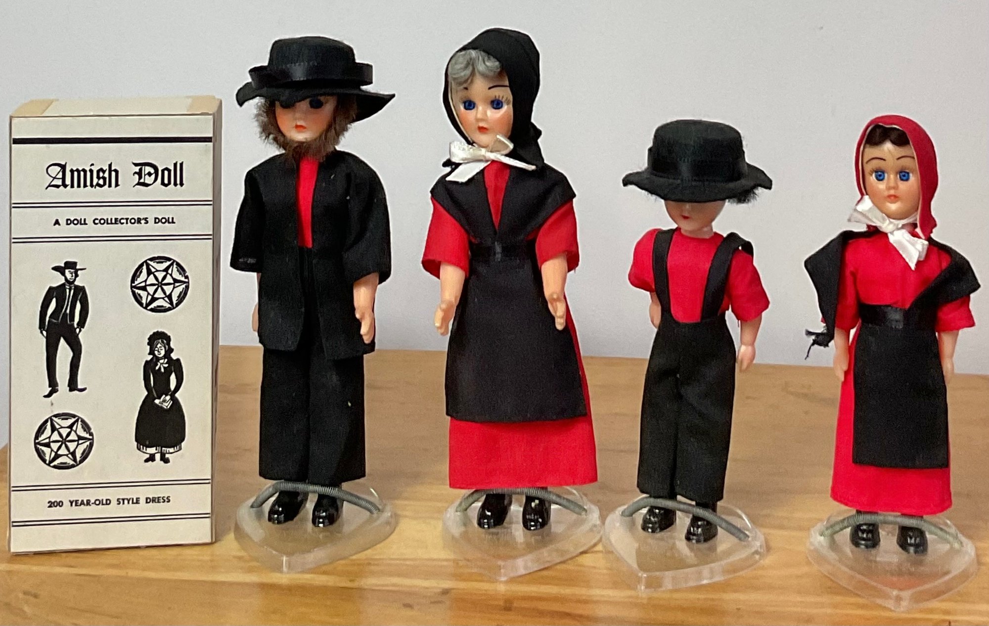 4 Vintage Amish Dolls - 6.25” to 7.5” tall - good used condition