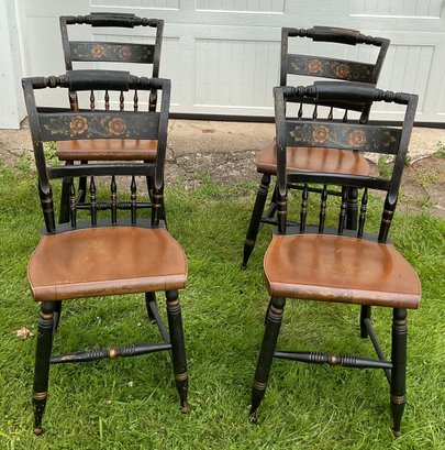 4 Vintage Hitchcock Stenciled Chairs - 34” tall x 16” wide x 15.25” deep - seat 18.5” tall - solid chairs - good used condition