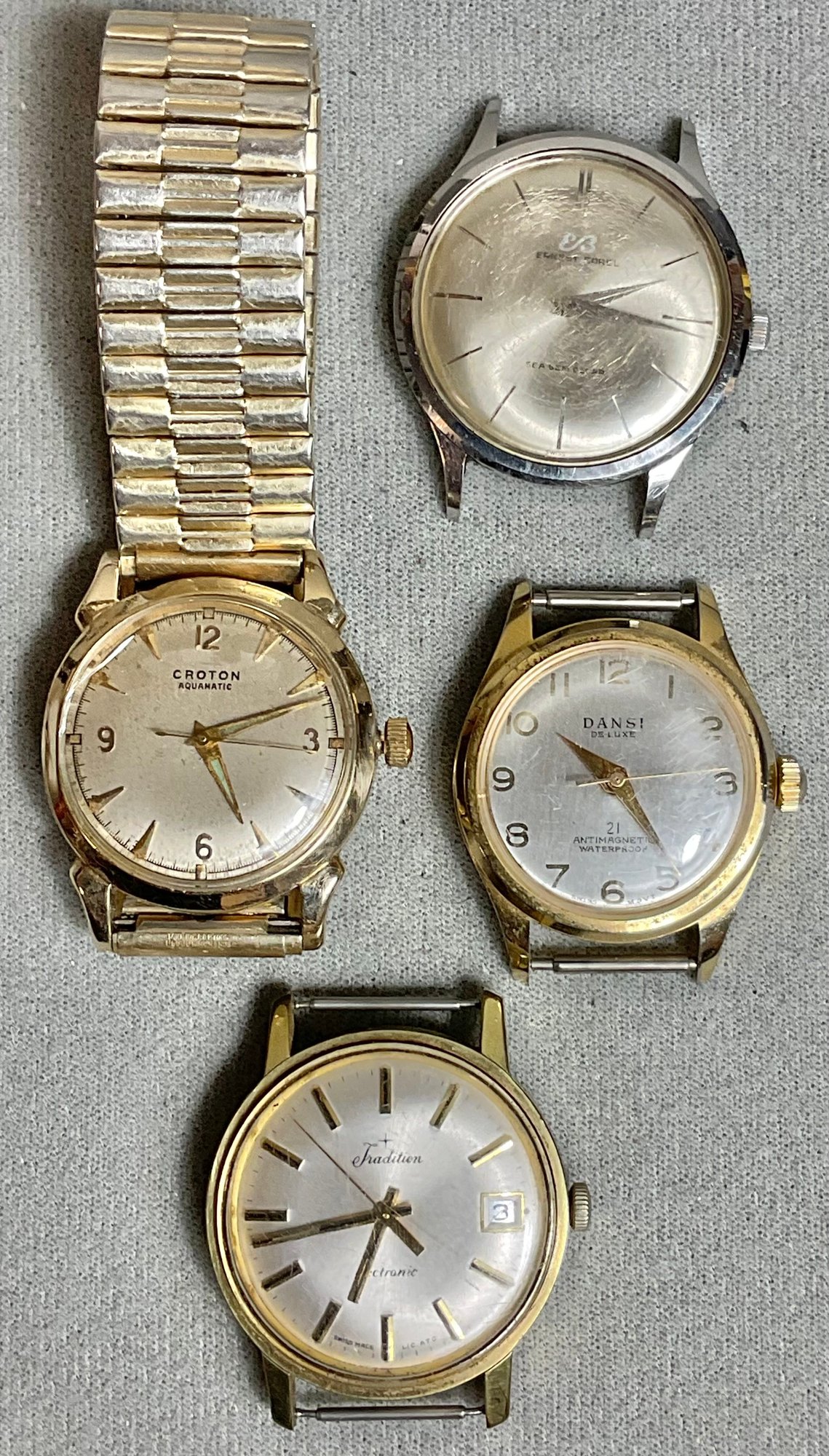 4 Vintage Mens Watches - Ernest Borel & Croton are running - Croton 10k gold filled case - other two not running - good used condition