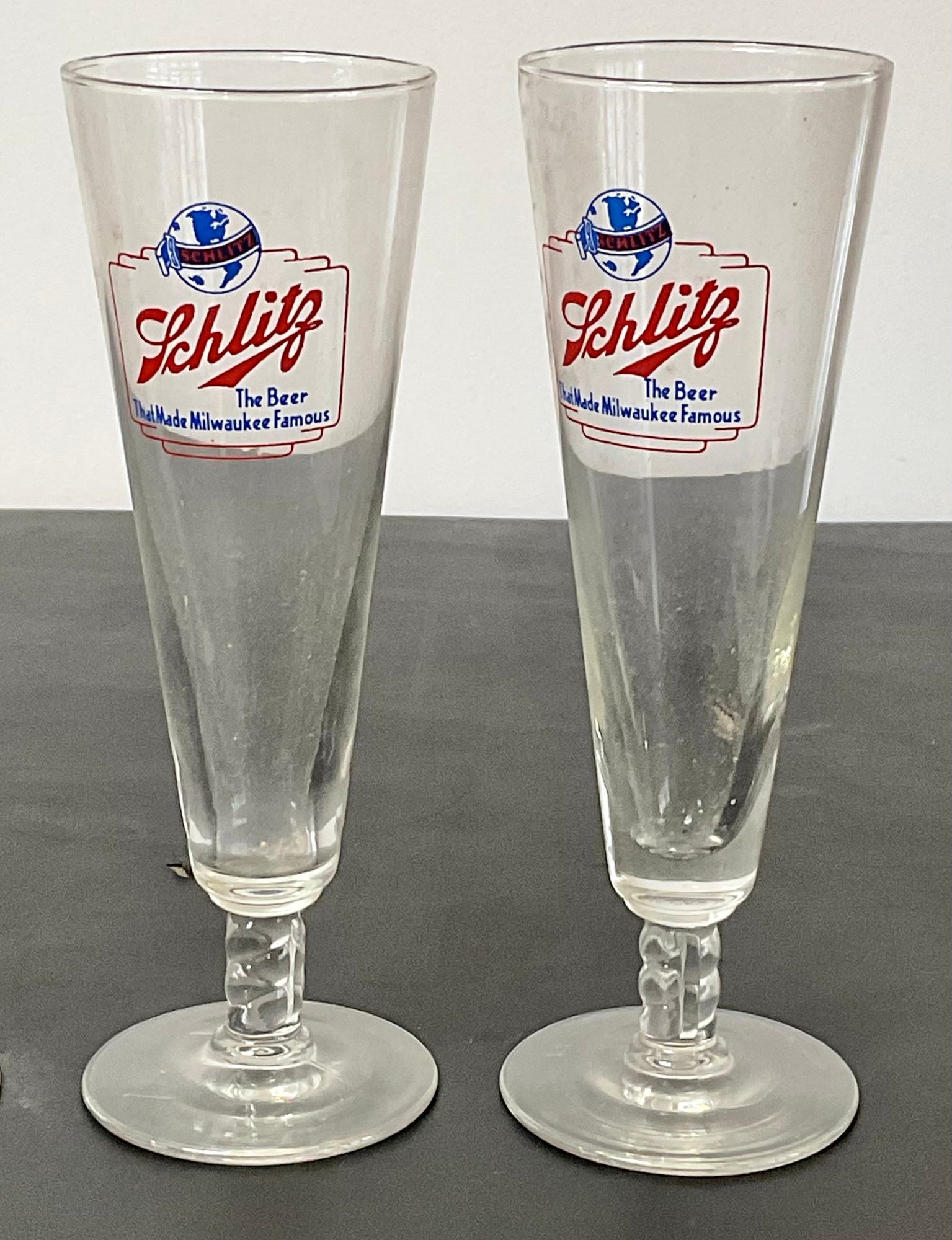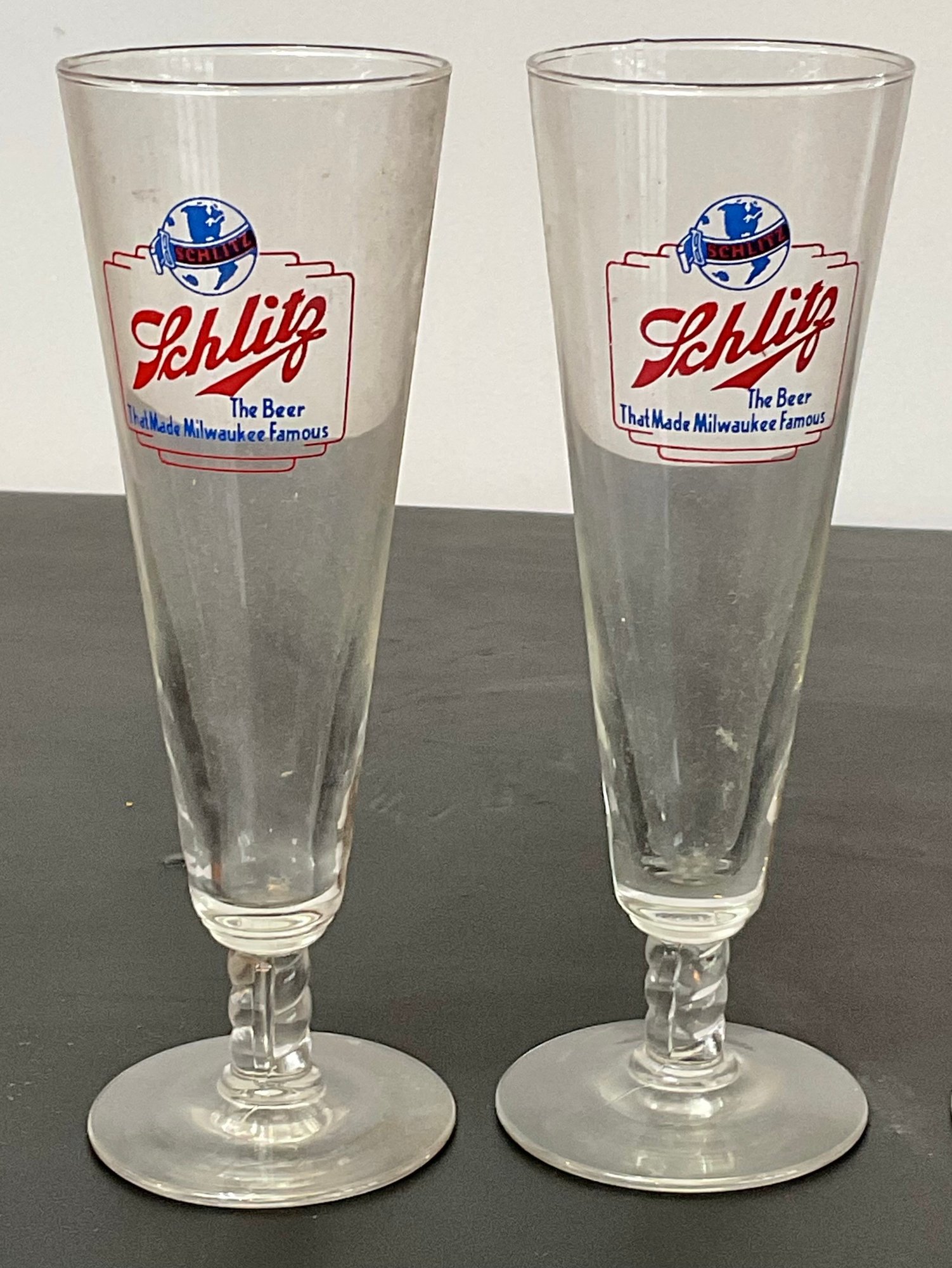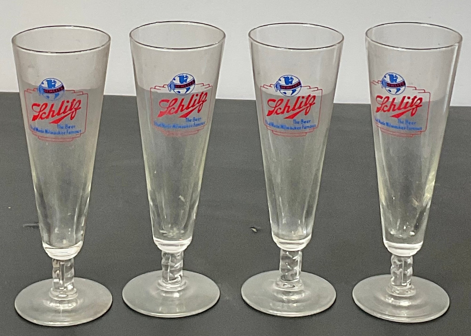 4 Vintage Schlitz Beer Glasses - no chips - 8.5” tall - good used condition
