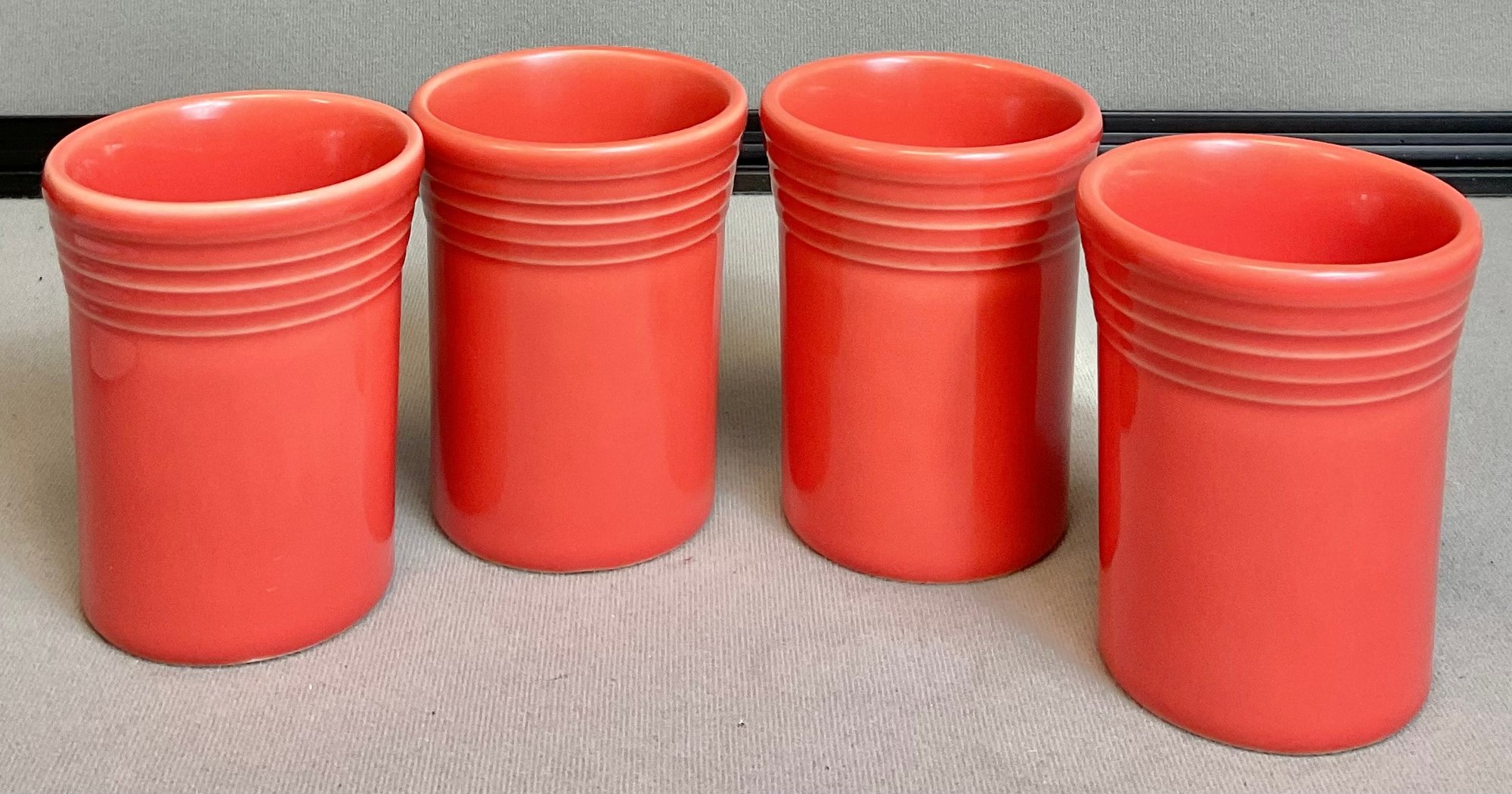 4pc Fiesta Ware Juice Tumblers - Orange - no chips (one cup has factory defect on bottom rim) - 3.75” tall - good used condition
