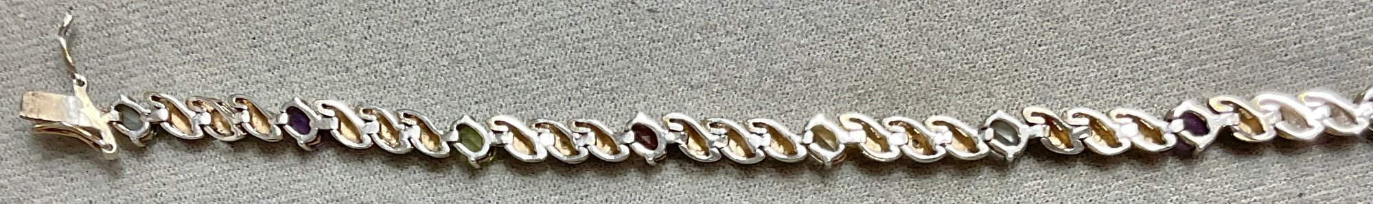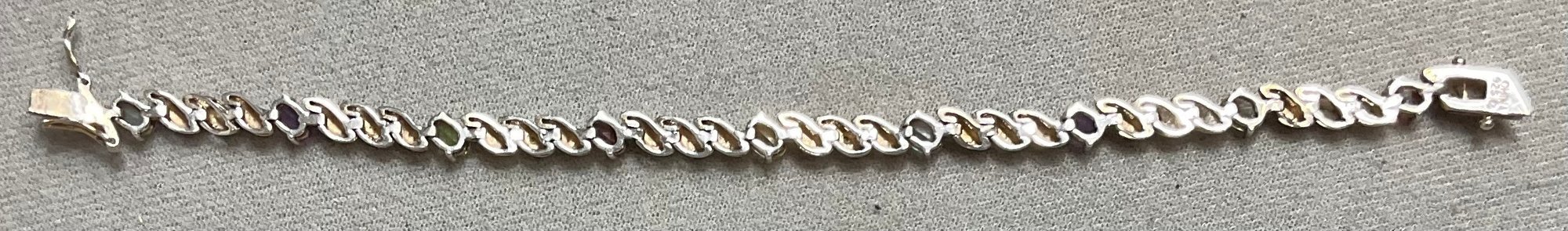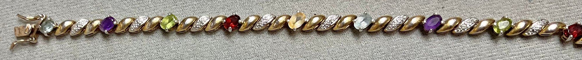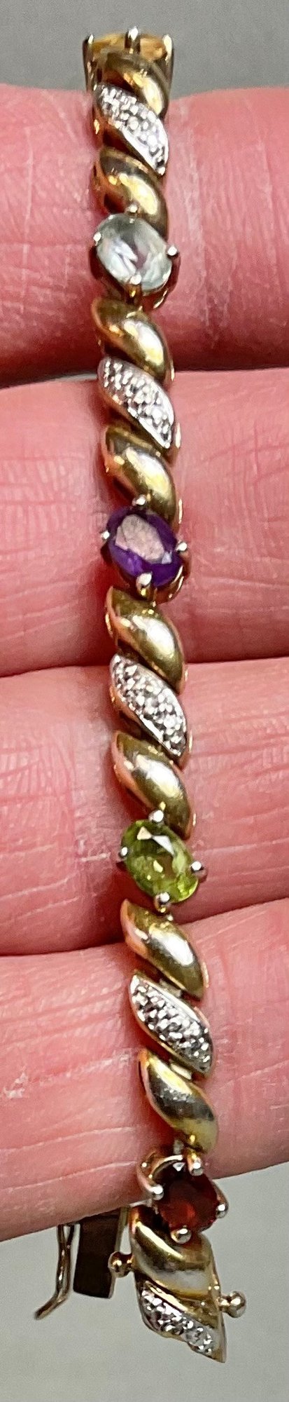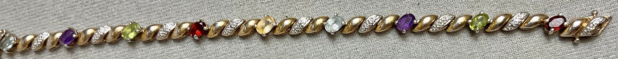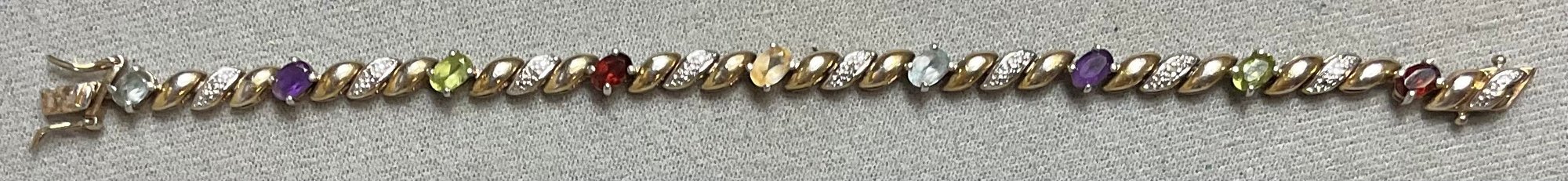 925 Gold Plated Multi Gemstone Bracelet - 7.5” long - weighs 14.1 grams - good used condition