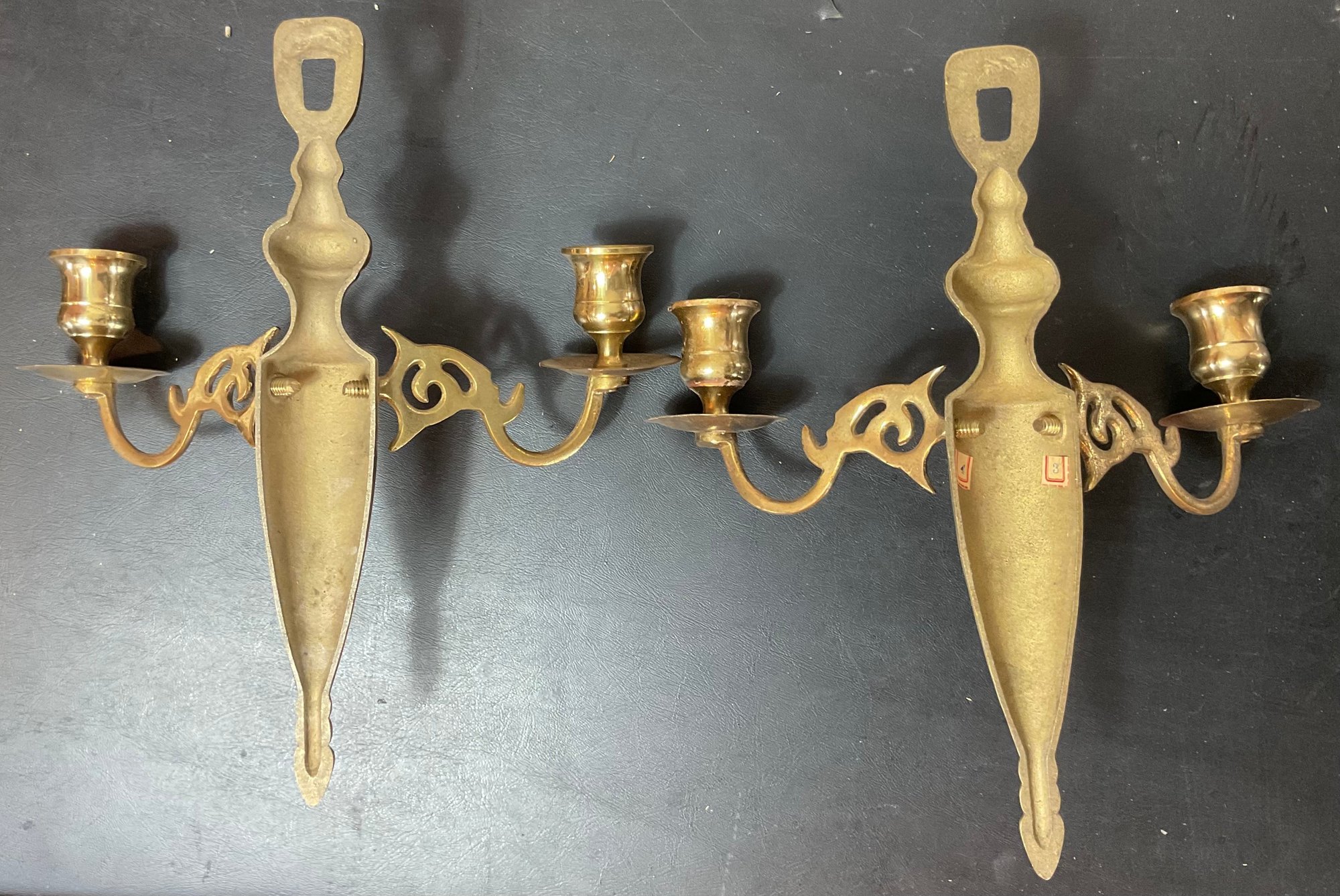 Pair Brass Wall Sconces - 10” x 9.25” - good used condition
