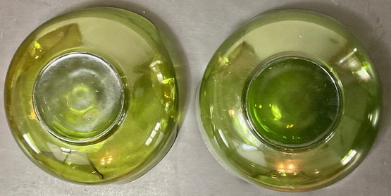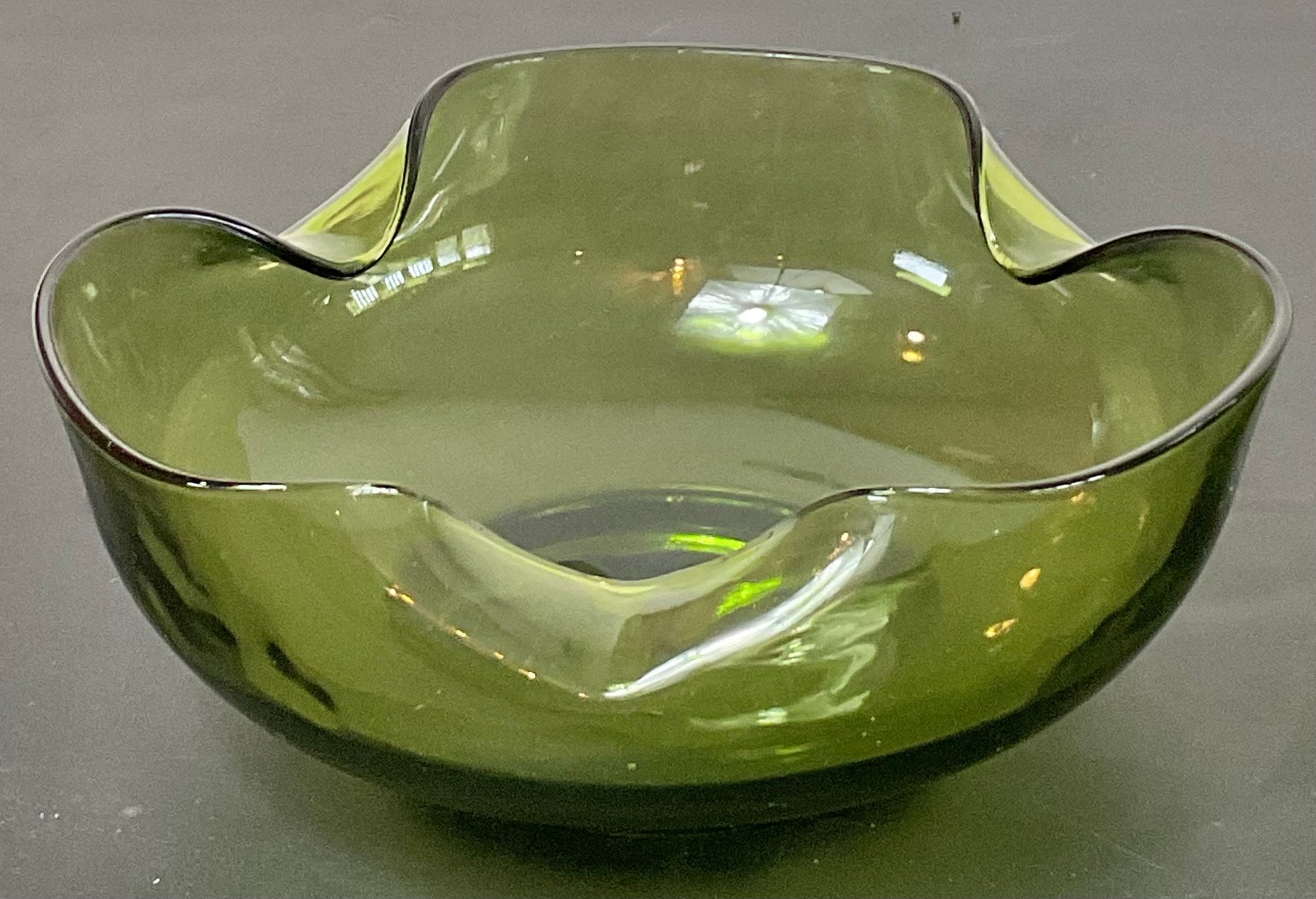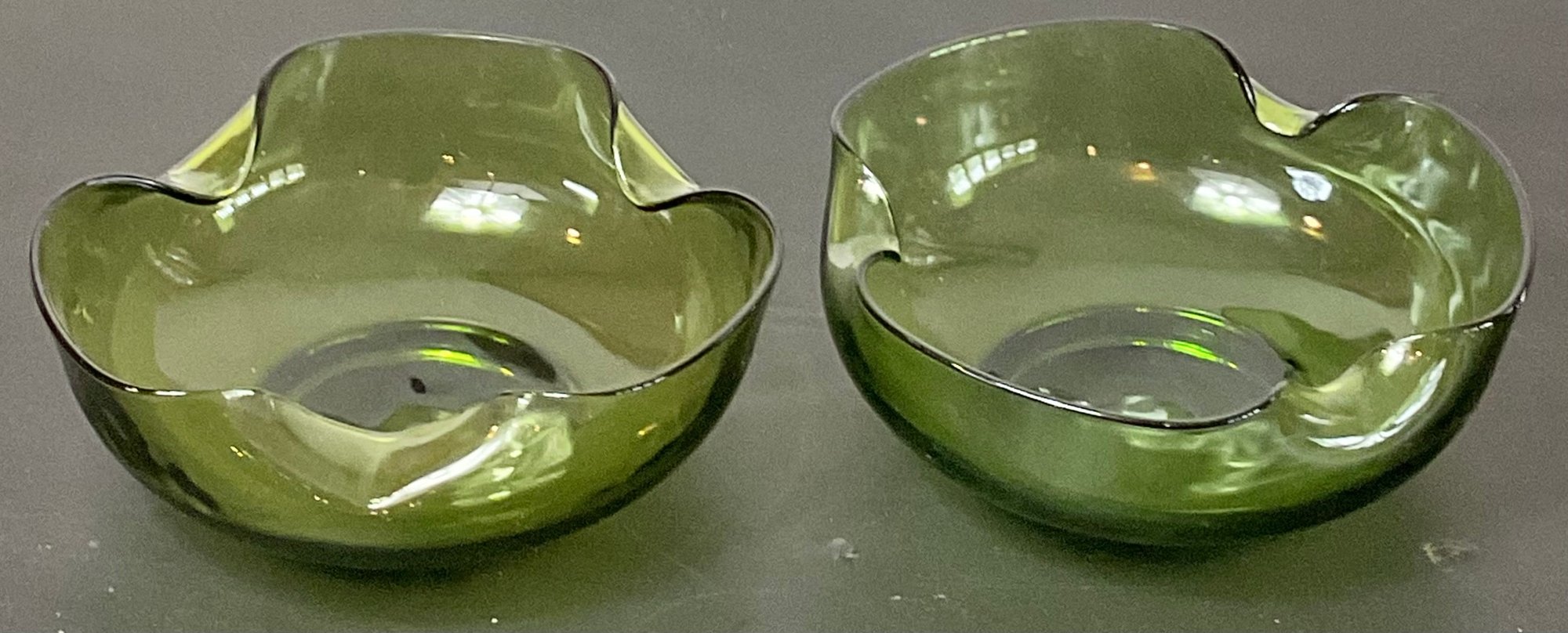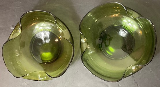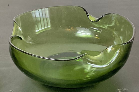 Anchor Hocking Avocado Green Pinched Edge Bowls - no chips - 4” tall x 9” x 9” - good used condition