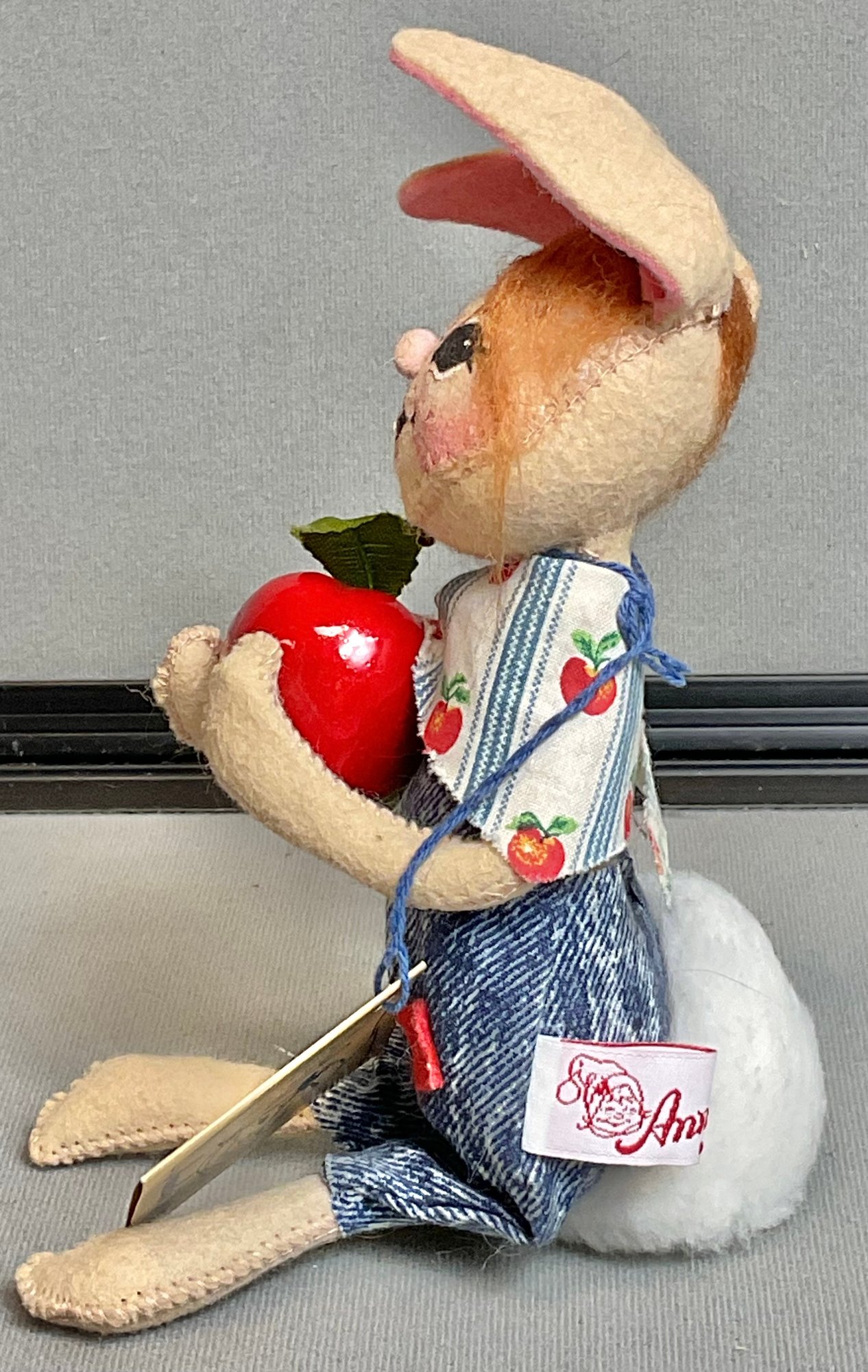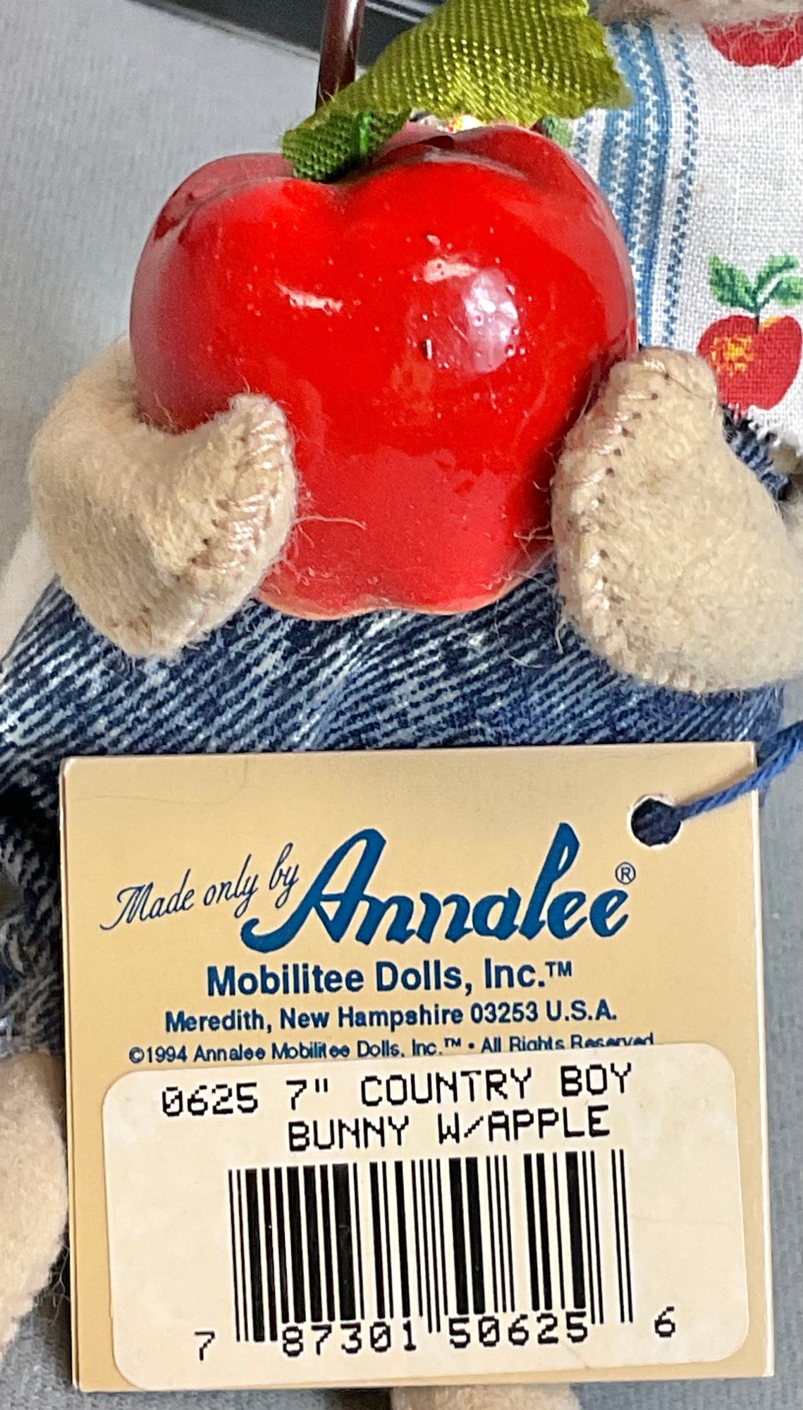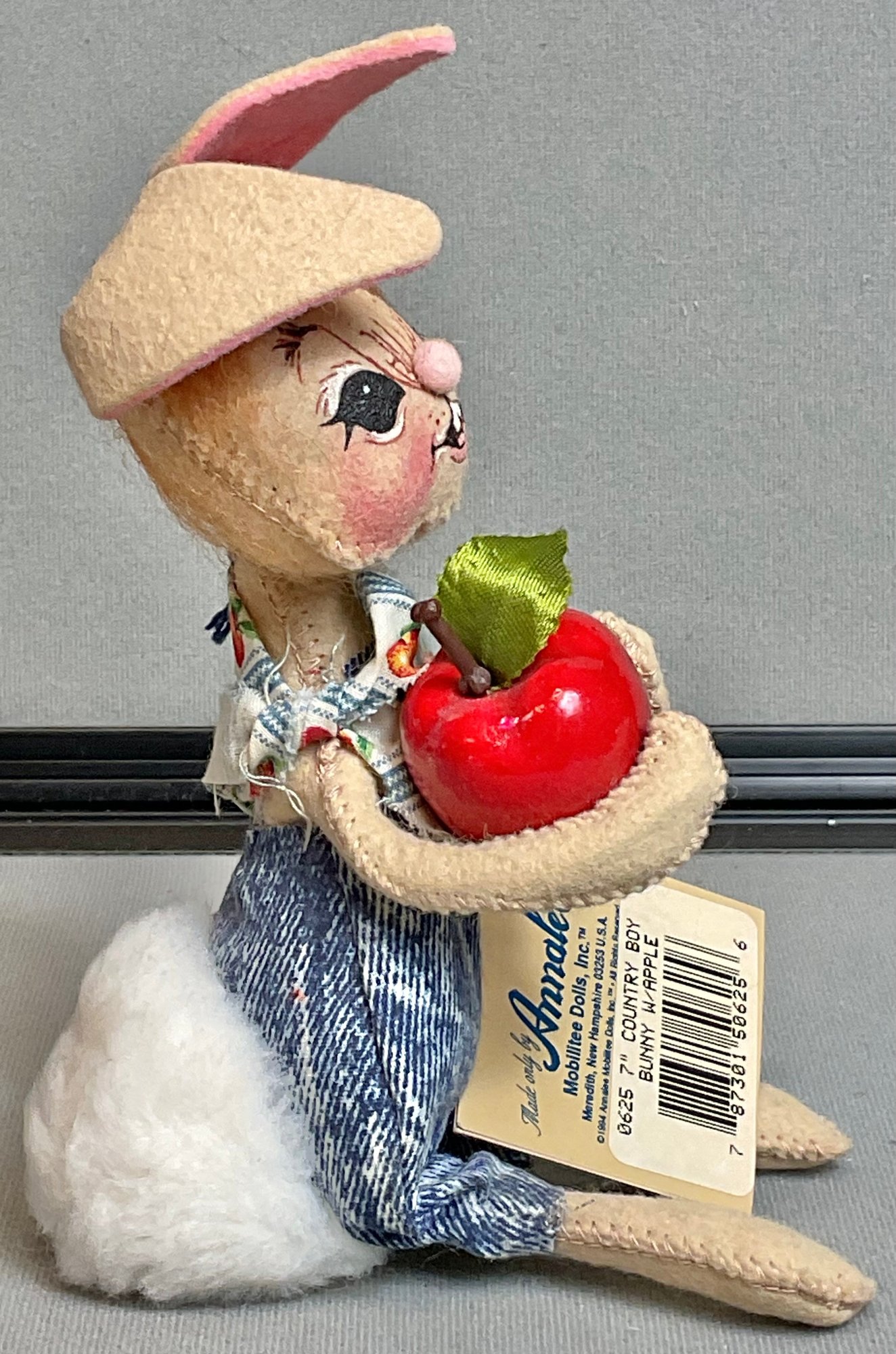 Annalee Country Boy Bunny W/ Apple - 7” - has tag - good used condition