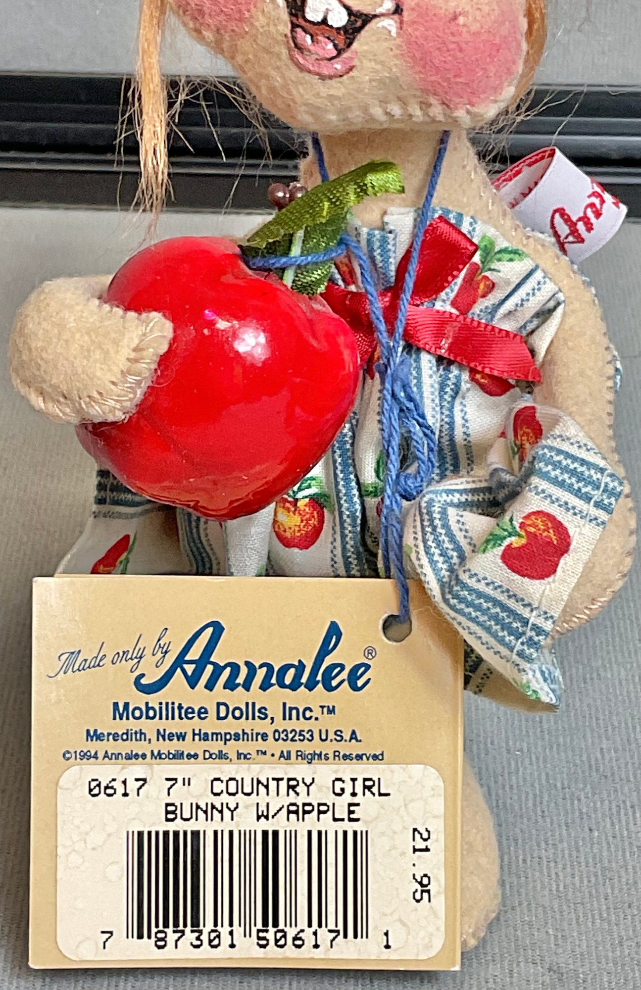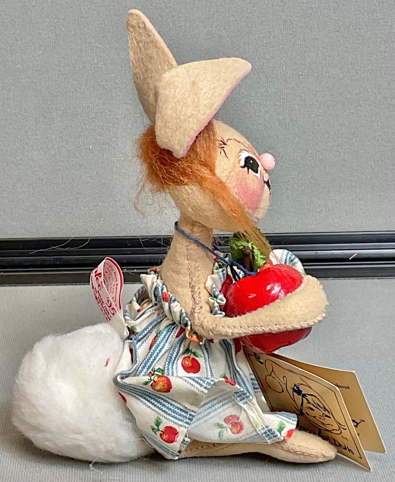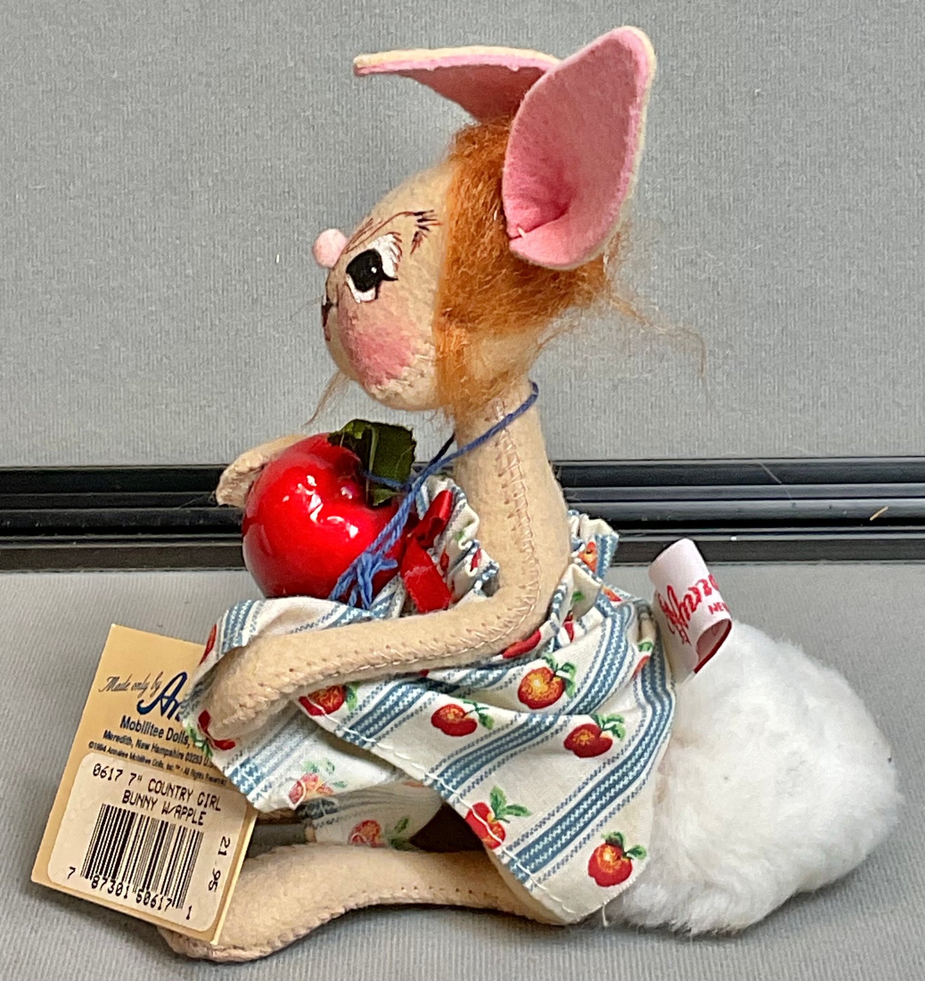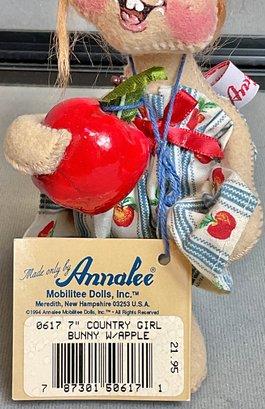 Annalee Country Girl Bunny W/ Apple - 7” - has tag - good used condition