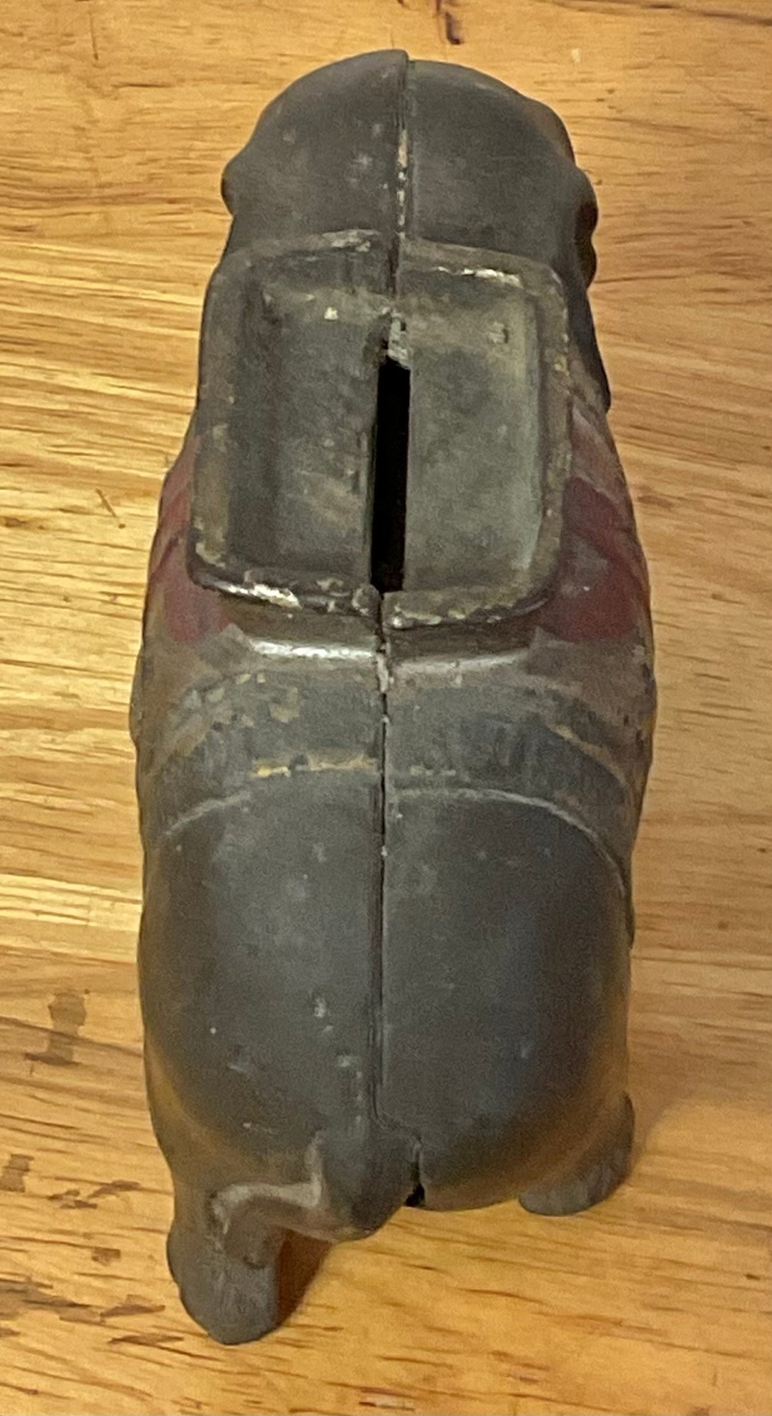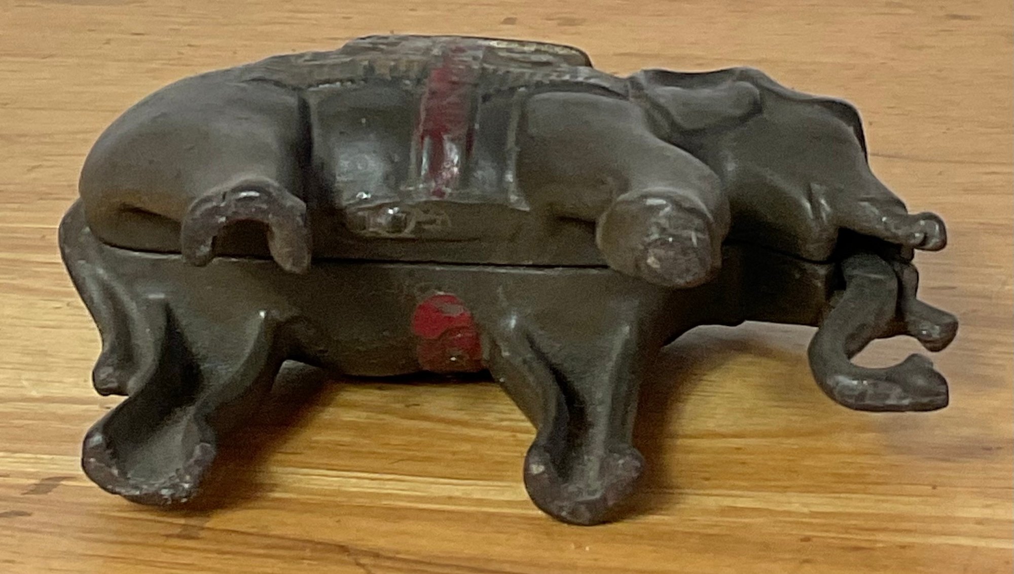 Antique A.C. Williams Cast Iron Elephant Mechanical Bank - works - 3.5” tall x 5” long x 2” wide - good used condition