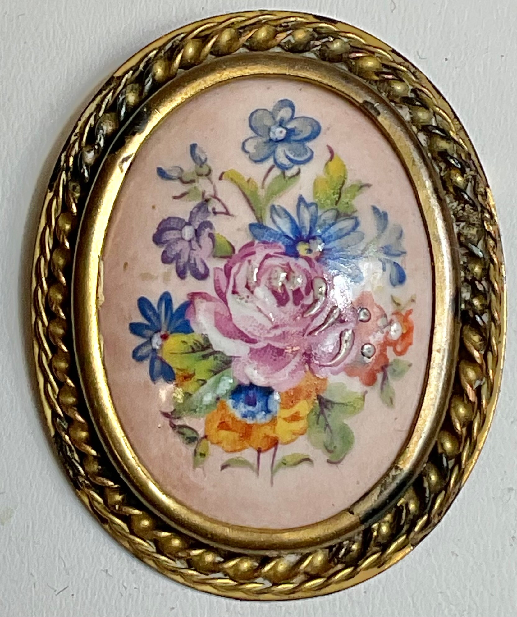 Antique Bijoux Romeo Hand Painted Limoges Brooch - good used condition