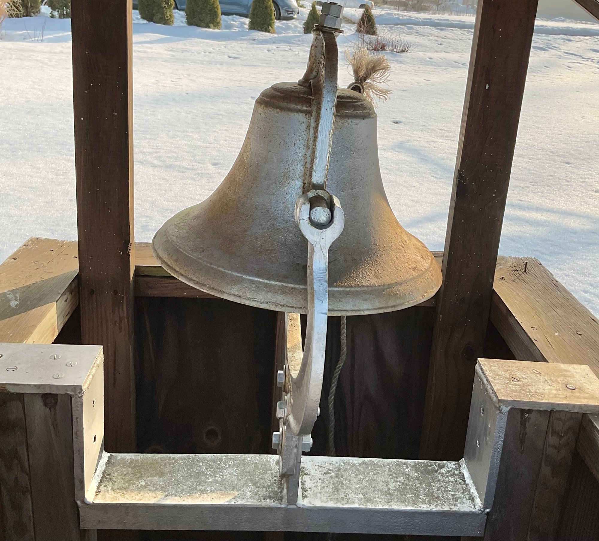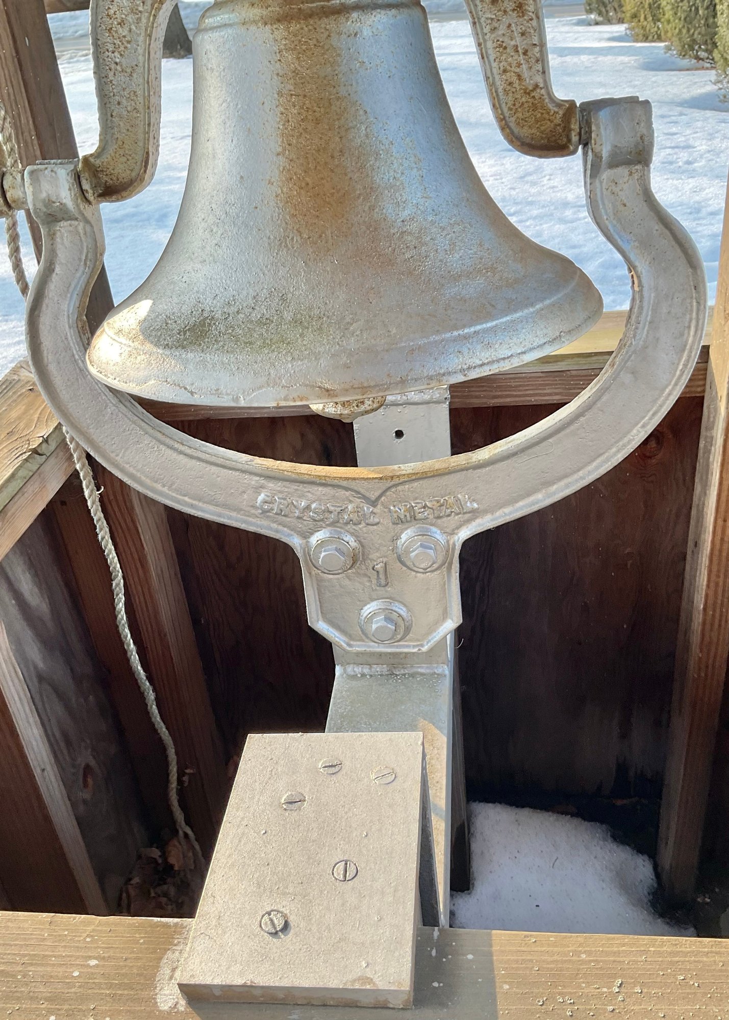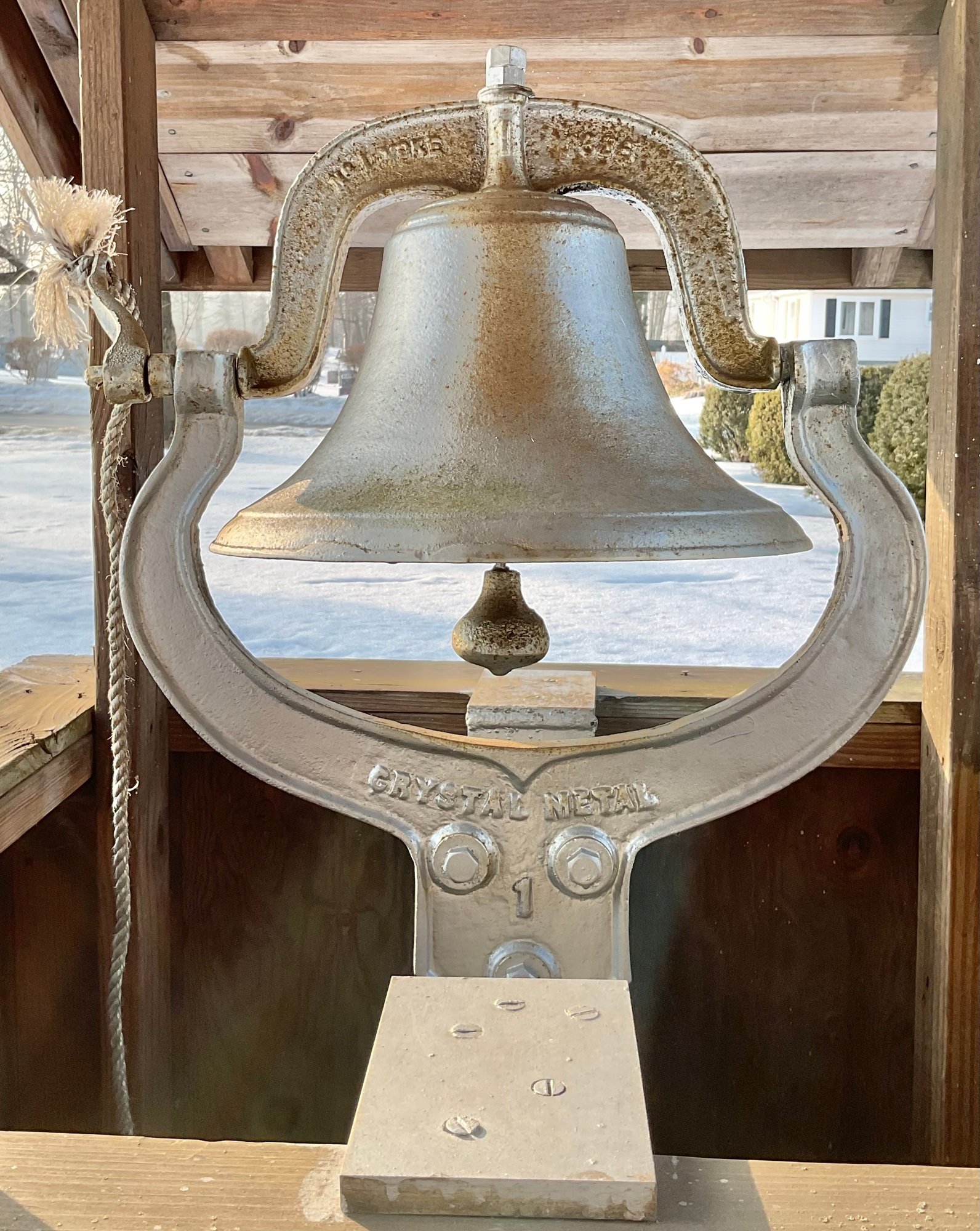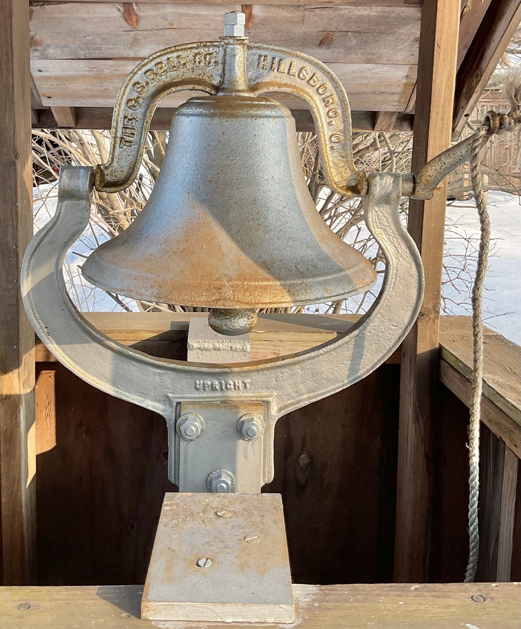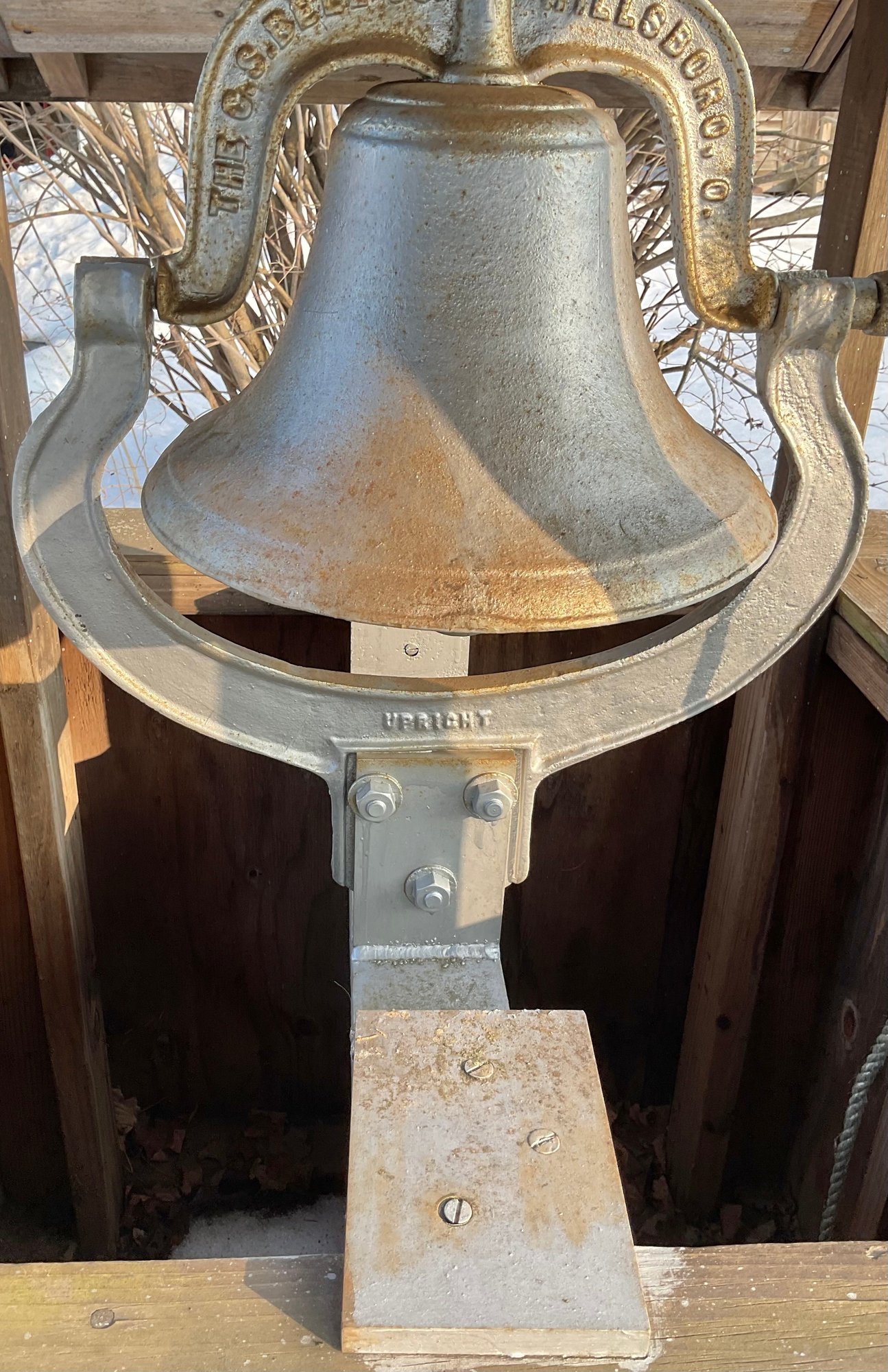 Antique C.S. Bell Co. No 1 Yoke School Bell - has mounting bracket - 24” tall x 18” long - bell 14” wide - good used condition
