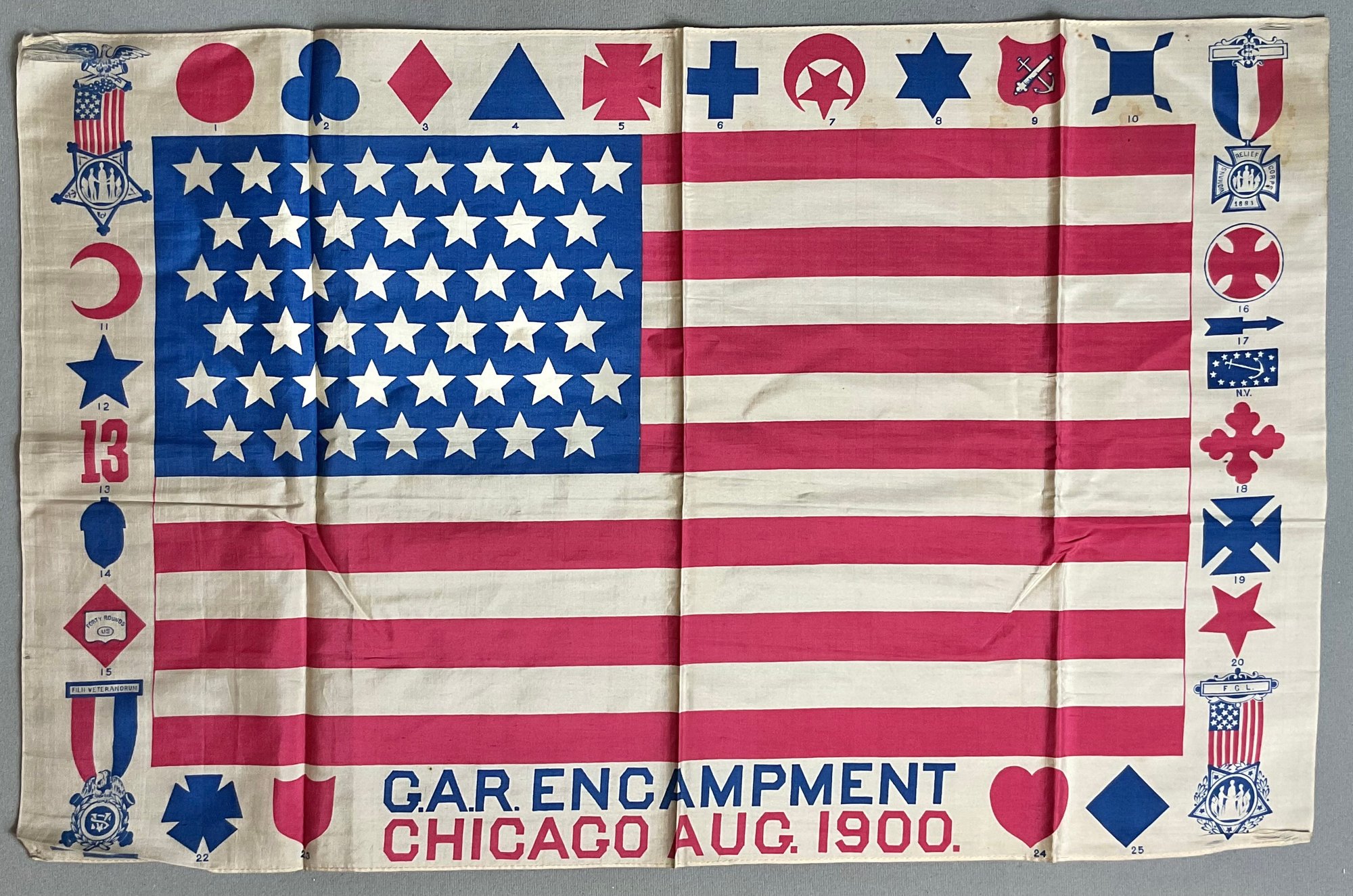 Antique Chicago 1900 GAR Encampment Silk Flag - 24” x 15.5” - good used condition